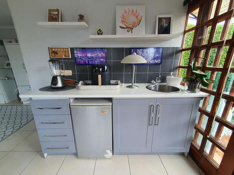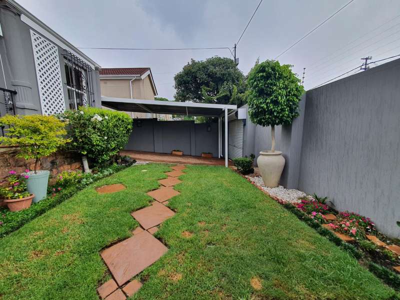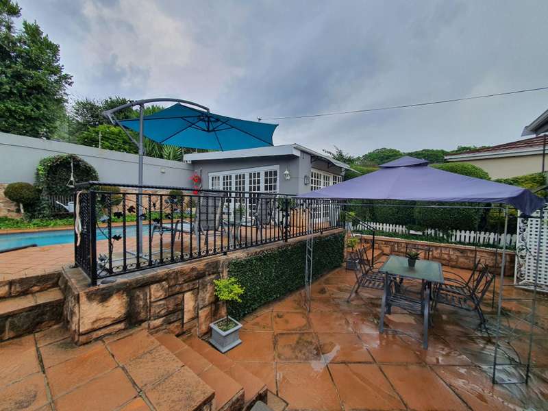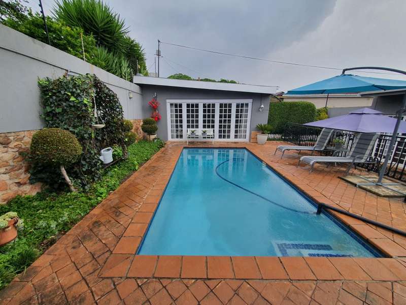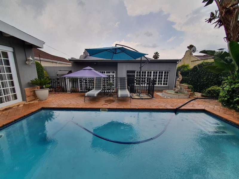 Welcome to modern living at its finest in Orange Grove, Johannesburg! This impeccably upgraded property caters to the discerning buyer seeking contemporary elegance and convenience in a freestanding home. As you step inside, you're greeted by an inviting entrance hall that sets the tone for what lies beyond. The open-plan layout seamlessly connects the living and dining areas, creating a spacious and airy atmosphere perfect for both relaxation and entertaining. The dining room boasts sliding doors that lead out to the paved entertainment area, complete with a cozy seating area, a tranquil fountain, and a raised pool, ideal for enjoying the South African sunshine. The kitchen is a chef's delight, featuring modern cabinetry, sleek countertops, and top-of-the-line appliances, including a Smeg gas stove. Large windows, equipped with sliding trellidor security, flood the space with natural light and fresh air, enhancing the overall ambiance. For those who work from home, a dedicated study area provides the perfect balance of productivity and comfort. The property offers three generously sized bedrooms, each boasting built-in cupboards and luxurious en suite bathrooms, ensuring privacy and convenience for all occupants. A garden studio flat at the rear of the property provides additional living space, perfect for extended family members or as a rental opportunity. Convenience is key with a separate laundry room and bathroom that can easily double as staff accommodation. Parking is a breeze with double automated parking and a single tandem space, all elegantly paved for a polished finish. Security features include pre-paid electricity, an alarm system, beams, electric fencing, burglar bars on all windows, and security gates on garden doors, providing peace of mind for you and your loved ones. Located in a highly sought-after area, this beautiful property offers the epitome of modern living and is truly a must-see for those seeking luxury, convenience, and style. Don't miss out on the opportunity to make this stunning property your new home!
