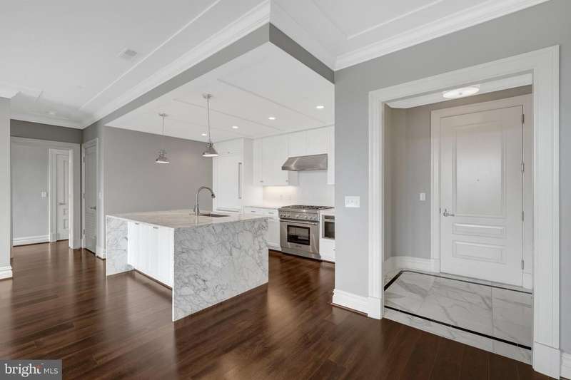Welcome to The Signet, McLean's premier luxury condo building, perfectly situated in the heart of the new-town streetscape. This exceptional location places you just blocks from downtown McLean's vibrant retail and dining scene, minutes from Georgetown and DC, a little over a mile from the Silver Line Metro, and only three miles from Tysons Corner. This spacious third-floor unit features two generously sized bedrooms-each with its own balcony overlooking the serene Signet Park at Elm Street-along with two elegant bathrooms and walk-in closets. Beautiful hardwood floors extend throughout the open-concept layout, which showcases a stunning gourmet kitchen with a large island, top-of-the-line appliances, and seamless flow into the dining and living areas. Additional highlights include two reserved parking spaces in the secure garage (Spaces 297 & 298).The Signet features lots of amenities including a grand lobby entrance with full-serve concierge, beautifully landscaped courtyard with 4 lounge areas offering: tables, fire pit area with seating, Trellis-covered outdoor bar and grilling area with sink, fridge and dining tables. There is a clubroom, fitness center, sauna, steam room, massage room, fitness trail, pet spa & much more! The new home of McLean Project of the Arts will be ready by end of the year in the Rotonda with small coffee shop.