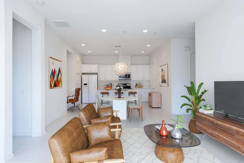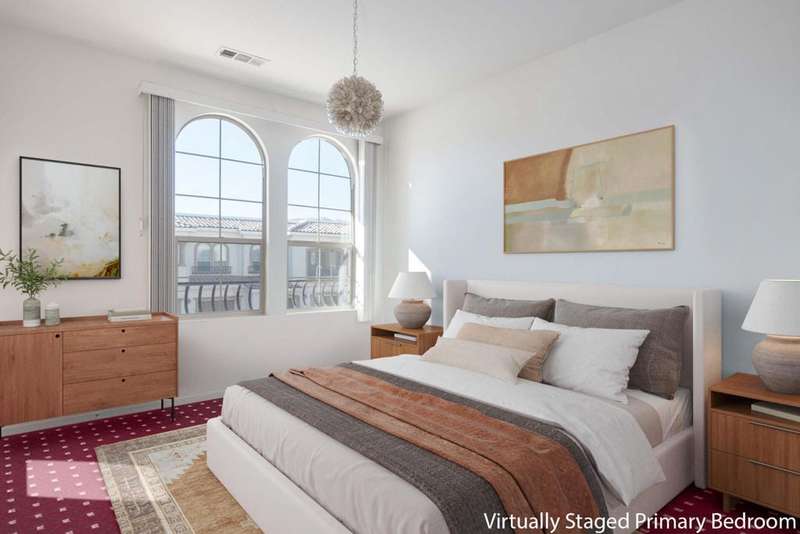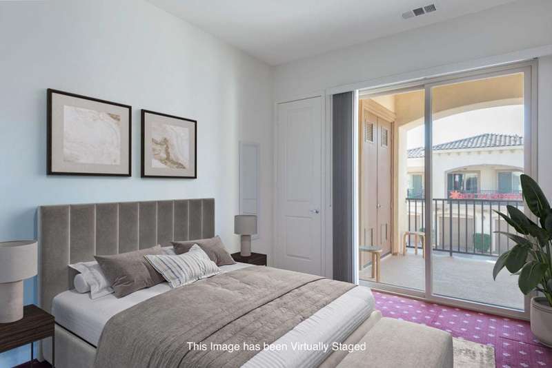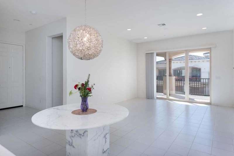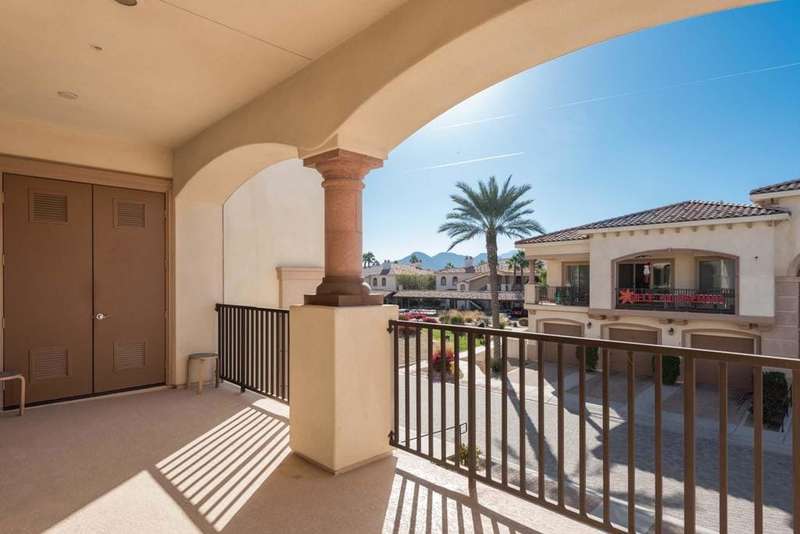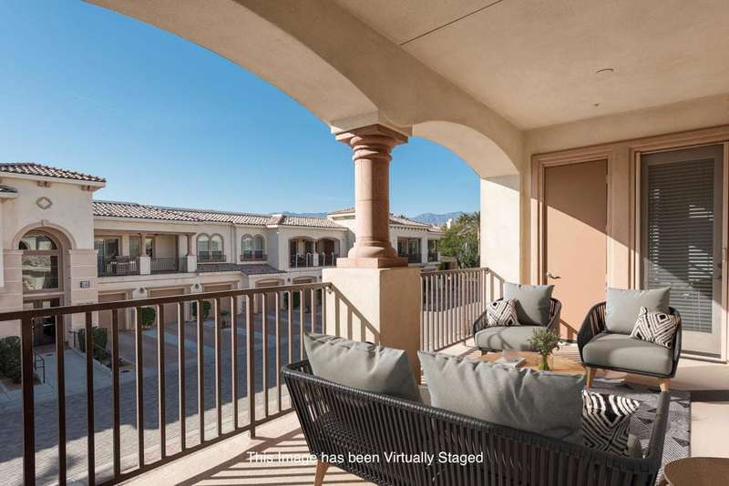 Welcome to Villa Portofino, this Active 55+ Community is centrally located here in the Coachella Valley. This second floor unit has a Great Room concept which includes a large kitchen and pantry along with an island sink which looks out onto the living space and exterior balcony. The Dining & Living Areas lead to an expansive 30+ foot balcony patio with awesome views. There is a guest bedroom and full bath with shower over tub across the hall. The Primary Bedroom also has balcony access and leads to a large en-suite with dual sink and tub over shower. There is a large walk in closet which leads to a Utility room which features full-sized Washer/Dryer and extra storage. This unit features a tandem garage with wall storage cabinets. This Villas is light and bright and ready for someone to put their personal touches to make it their own! The Villa Portofino community boasts a 30,000 sq ft club house with a 100-seat theater, a bistro, dining, sports bar, library and More!! Centrally located in Palm Desert and is very close to local Shopping & Restaurants. Please check this price adjusted unit out and call with any questions. Make an Offer TODAY!!