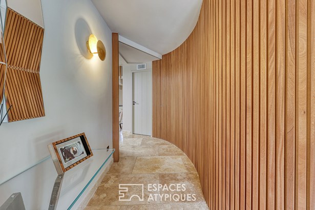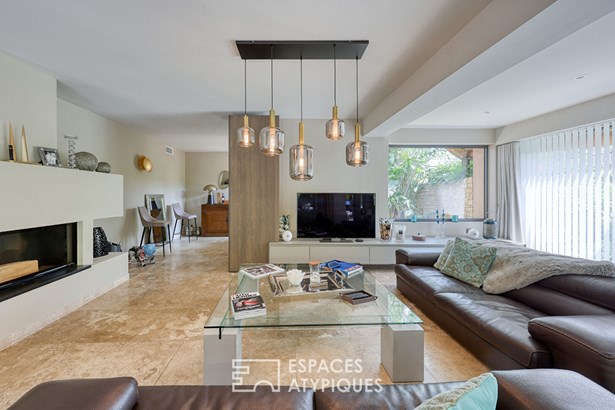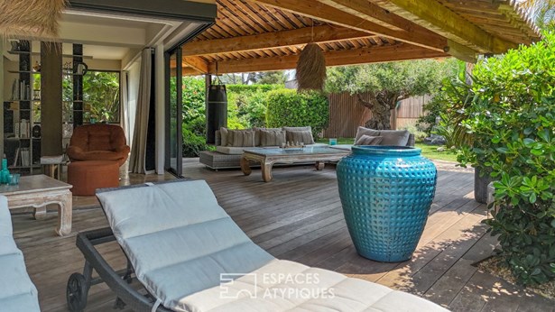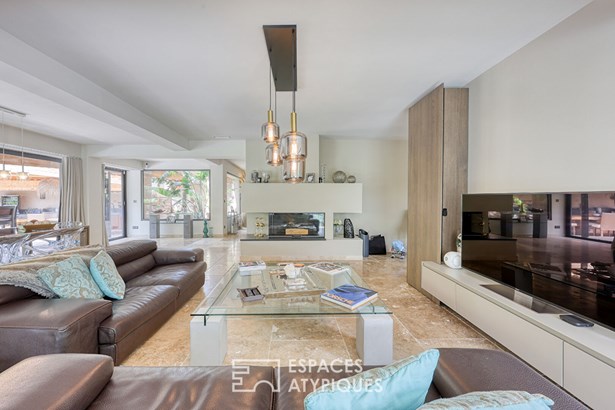 In Six-Fours-les-Plages, in the heart of the sought-after Coudouliere neighborhood, this architect-designed house by Maurice Sauzet boasts 250 m2 of living space on a 960 m2 landscaped plot.