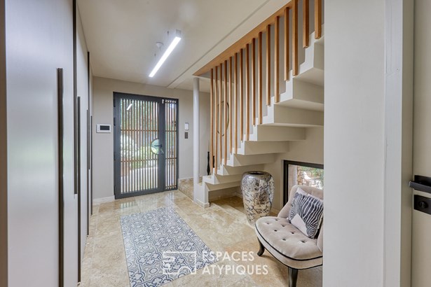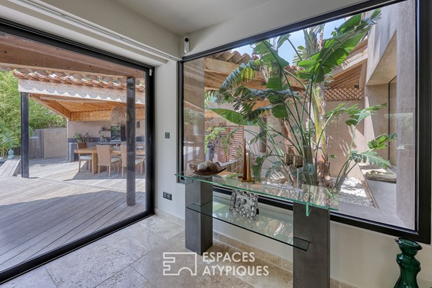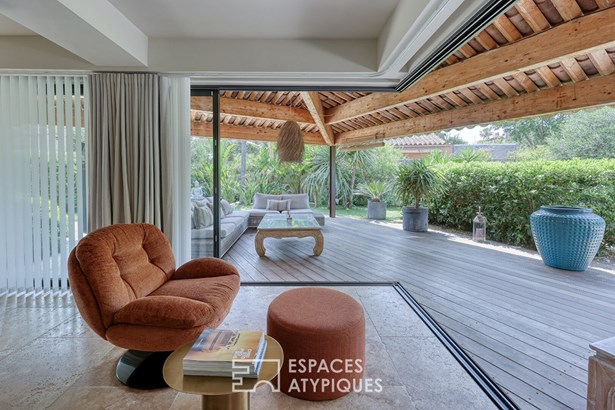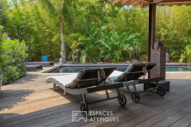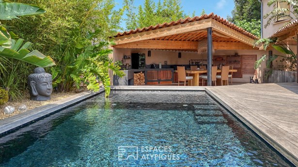 Outside, the garden planted with Mediterranean trees creates a lush green setting conducive to tranquility. The private swimming pool adjoins a fully equipped pool house, designed for conviviality.