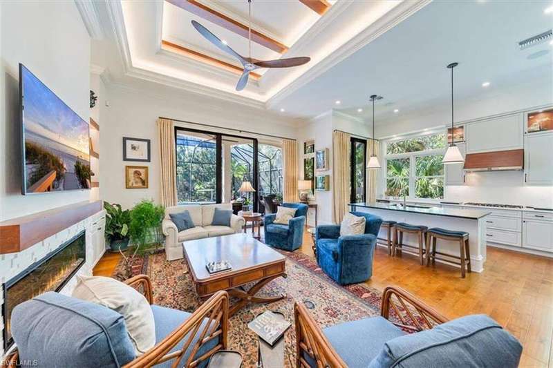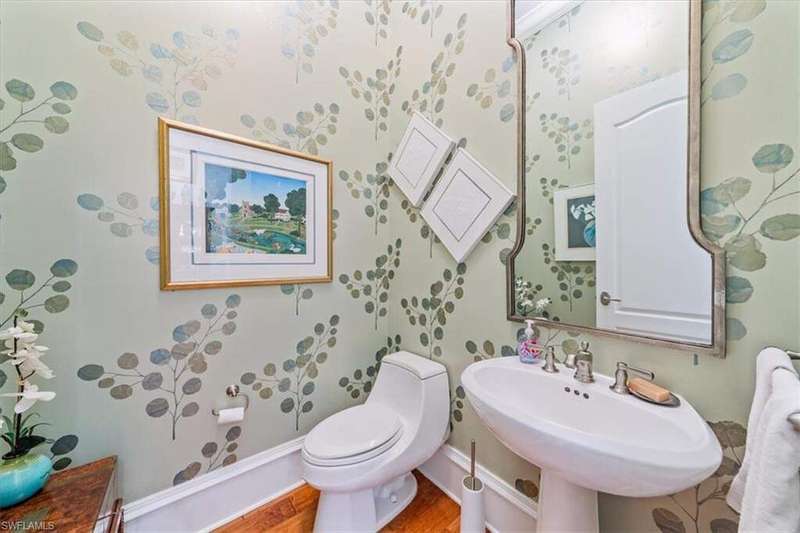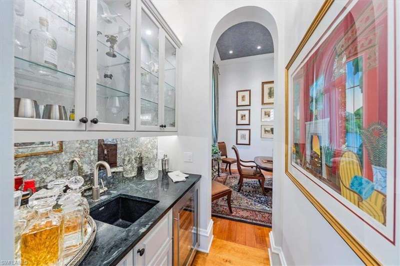 This home has had extensive renovation, including a new third garage stall, new luxurious amenities for the Primary Suite's Bathroom (built-in Sauna, free-standing Soaking Tub, Steam Shower, Towel Warmer and 2nd laundry facility). The Great Room features lighted display shelves and cabinetry on either side of the new mesmerizing Electric Fireplace. The re-imagined Kitchen has an island and windows added to provide more natural daylight and views of the 15-acre Nature Preserve. Appliances include Sub-Zero, Bosch, and Thermador refrigeration drawers. A pull-out Coffee Bar, including faucet, has been incorporated into the custom cabinetry and disappears when not in use. Even the Butler's Pantry received a new sink. The Dining and Living Rooms have large windows and 12' ceilings. The Foyer features custom beamed and lighted 20' ceiling and windows that overlook the courtyard. The En-Suite Bedrooms and guest laundry are off the East Hall and the Office is off the West Hall. Control4Home System manages lighting, HVAC, security and internet in person or from across the globe. One of Mediterra's most private lots, the screened Lanai opens to the lush, private Preserve.