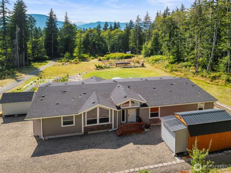 This amazing 2927 sq ft, only 4-year-old, model home has so many upgrades and a NWEnergyStar Cert! The 3 bed/2 bath hugeness feels even bigger sitting on its spacious 5 acres. Massive kitchen boasts a secret walk in pantry! Catch peeks of Mt Walker, Mt Constance to the west. Watch wildlife meander through the cleared two and a half acres. The home and well are wired and ready for included generators. There's a cleared site with power ready for a future shop/garage. Fruit trees and gardens will keep you busy. The peace and quiet might surprise you, but you’re going to love it! If that's not enough-the storage! Never seen a home with too much storage or as much as this one! This home must be seen to believe all is has to offer! GPS friendly