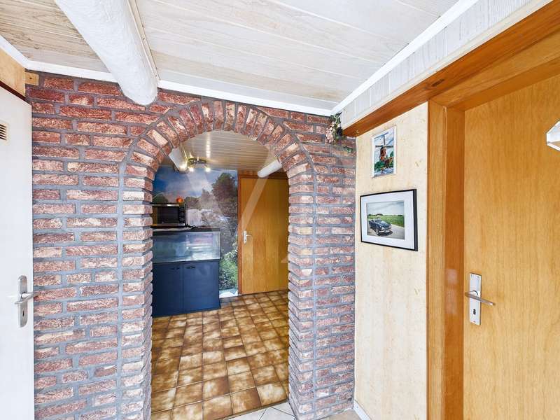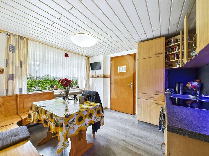 This semi-detached house from 1911 offers a well thought-out room layout with potential for individual design on approx. 90 m² of living space. In addition to a garden, the approx. 500 m² plot also includes a garage and a parking space and offers a wide range of possible uses. Upon entering the house, you are greeted by a central hallway from which all rooms on the first floor are accessible. To the right is a separate guest WC, while the bathroom is to the left. At the end of the hallway, also on the left, there is a small kitchenette with an adjoining storage room - ideal for provisions or household appliances. Straight ahead through the hallway you enter the main kitchen, which is equipped with a fitted kitchen. From here, a second hallway with a separate entrance leads further into the interior of the house. This area opens up additional design scope, for example for a possible granny apartment. The second hallway leads into the spacious living room, which offers plenty of room for cozy living ideas. Directly adjacent is the bedroom, which is also accessible from the living room. A wooden staircase in the main hallway leads to the top floor. Three further bedrooms are available there, which can be used flexibly as children's rooms, study rooms or guest rooms. The property is in need of renovation, but offers a solid base for talented craftsmen or buyers with creative ideas. Thanks to the existing garden, garage and parking space, the semi-detached house is not only interesting for families, but also for couples or investors looking for a house with development potential.