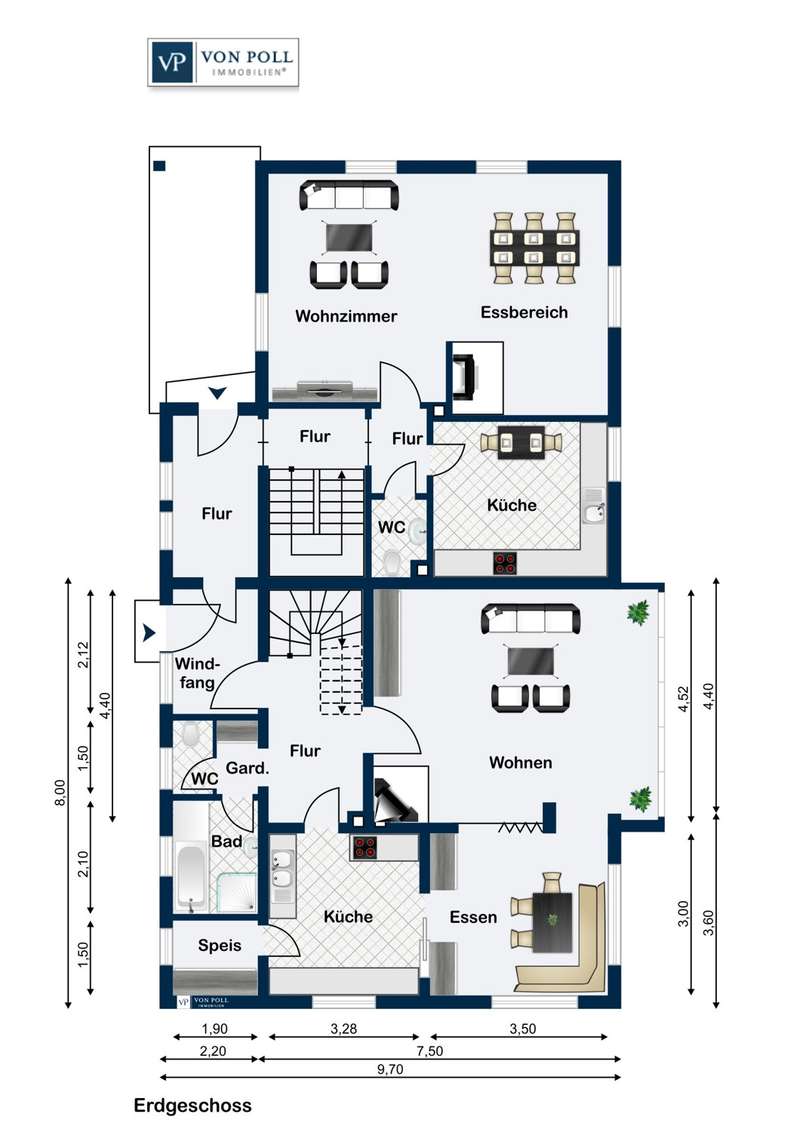 This unique property offers an impressive combination of two connected semi-detached houses used as one spacious family home. With a living space of approx. 180 m² and a plot area of approx. 1,255 m², this property presents itself as a true space miracle, ideal for families who appreciate plenty of space and flexible usage options. The semi-detached houses extend over two plots and offer a passageway between the houses on each floor, creating an exceptionally open space concept. The clever layout offers retreats and communal areas in equal measure, giving the house a unique feel. On the first floor, you will find a spacious, bright living and dining area, which offers a picturesque view of the extensive garden through the large window fronts. This area is ideal for sociable evenings and family get-togethers. Right next to it is another living room with a charming tiled stove. The spacious kitchen with adjoining pantry offers plenty of space for cooking and storage. For added convenience, the first floor has a study, which is also ideal for use as a guest room. There are four bright bedrooms on the top floor, offering plenty of space for a large family. Each room is generously proportioned and can be individually designed. The basement of the house has a party room that is perfect for celebrations and events. There is also a small workshop directly in the boiler room. The spacious garden with fruit trees offers numerous opportunities to relax, for children to play or to create a dream outdoor area. The spacious lawn invites you to spend relaxing hours outdoors and offers plenty of space for horticultural ambitions. A double garage rounds off the offer and provides ample space for two vehicles as well as additional storage space. This unique property offers a rare opportunity to enjoy two semi-detached houses in one home. The flexible room layout, spacious garden and versatile usage options make this property an ideal home for families looking for plenty of space and an exceptional living concept. See this special offer for yourself and arrange a viewing today!