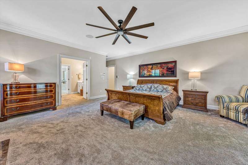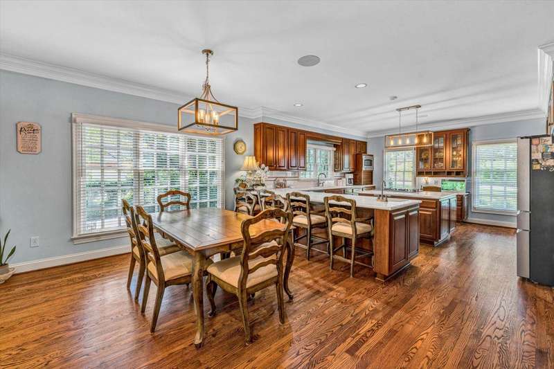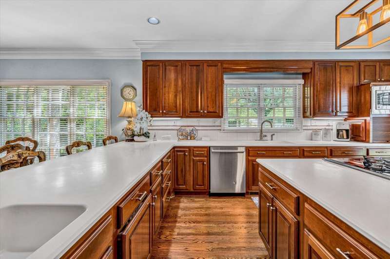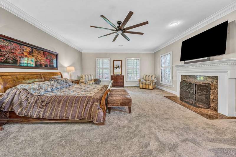 Southern Living at it's Best! 5 BR, 4 Full 2 half Baths -3 car heated garage - First Floor Primary Suite with Fireplace & En-Suite bath plus 4 large bedrooms up- Jack & Jill bath, walk-in closets & built-in desks. Gourmet Eat-in Kitchen with Custom Cabinetry, Kitchen island with Thermador gas range; GE Cafe Double-Ovens & French Door Refrigerator; Hardwood Floors -Crown Molding, Family Room Dining Room, Screened Porch & Deck overlooking the ''park-like'' private backyard with firepit. Spacious 1st-Floor Laundry/Mud Room. Fully Finished walk-out basement w/ Recreation Room including kitchenette, game room, den & Media Room or 6th bedroom/in-law suite- Plus storage room & lower patio. Welcome Home!