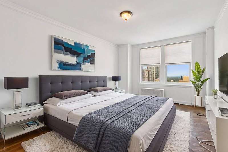 The Eddystone, located at 421 W Melrose Street. Constructed in 1929 and housing 77 distinguished condominiums across 21 stately stories. Upon entering off the private elevator, you are greeted by a graceful foyer with original ceiling arches. Ascend two steps up into a double living room that serves as the heart of this 3400+ sq ft home, featuring a hand-carved, finely detailed original marble fireplace that stands as a masterpiece of artisanal craftsmanship. Solid oak floors, set in a beautiful parquet and herringbone pattern, span the entirety of the home. Natural light floods the space through a series of elegant French swinging windows-gracing both the living room and Dining room. For those seeking functionality, the home offers an optional library or flexible office space adjacent to the living room. Culinary enthusiasts will delight in the expansive kitchen with an adjoining large eat in area, with its ample storage. The primary ensuite bedroom is a sanctuary of relaxation, featuring a cozy sitting area, and panoramic views of the western horizon and Lake Michigan. Two additional spacious bedrooms, complemented by a total of three full bathrooms. The 4th bedroom is being used as a small TV room off the Primary bedroom. Residents also enjoy thoughtful amenities. A recently added rooftop deck and a refreshed laundry and workout facilities. A dedicated 24-hour door person and on-site part-time management & security. One block off the sparkling lakefront along with the vibrant charm of East Lakeview's premier shops and dining. This remarkable listing offers a residence with architectural integrity and an unbeatable urban location.