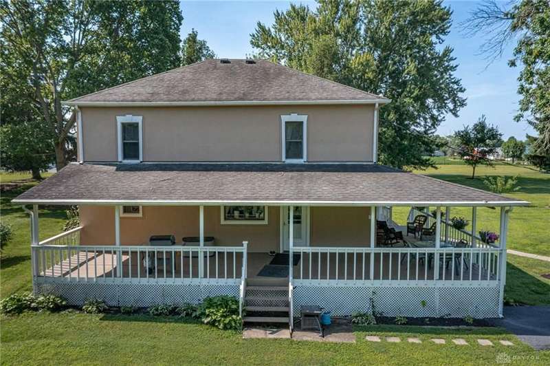 Bring your horses! This property offers the perfect setting to create your dream horse farm. you're searching for a beautiful, move-in ready home full of Southern charm complete with a stunning wraparound porch, your search ends here. This rare gem is tucked away on over 10 private acres, offering peace, seclusion, and endless possibilities. Built with character and warmth, the main section of the home is constructed from logs and features an exterior finished in EIFS, known for its energy efficiency and versatile aesthetic appeal. Inside, you'll find spacious rooms throughout, including an oversized great room that's perfect for entertaining, along with a delightful three-season room featuring a custom bar. Recent upgrades include two new heat pumps installed in 2023 and 2024, ensuring year-round comfort. The home is powered by 200 AMP electric service, as is the large barn on the property. This is truly a car enthusiast's dream. The 48' x 30' detached garage accommodates up to five vehicles, while the massive 125' x 30' pole barn includes four bays, three with 10-foot garage doors and a rear lean-to. It can hold approximately 10 cars. On the end of the barn, you'll find a versatile 2-3 bedroom apartment or office space, ideal as a guest suite, mother-in-law quarters, or rental unit complete with separate utilities and a brand-new HVAC system installed on July 22, 2025. As you explore the property, you'll discover a serene pond with a dock (formerly stocked), and a 40' x 20' picnic shelter perfect for outdoor gatherings and summer fun. With so many features and amenities, this one-of-a-kind property must be seen to be fully appreciated.