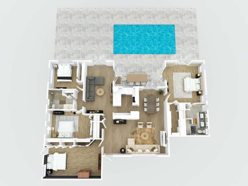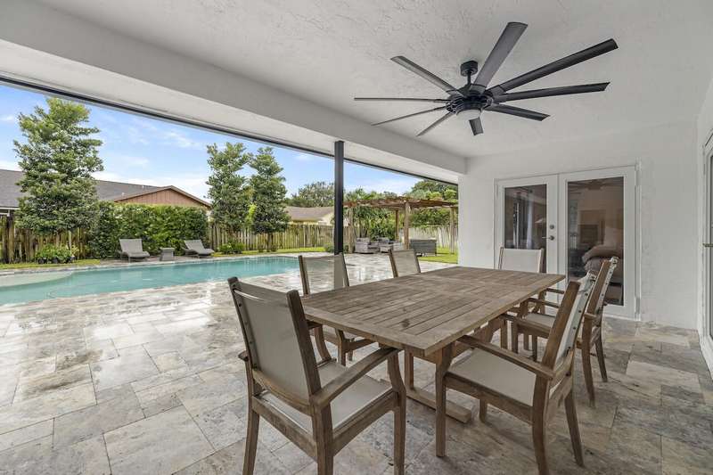 Seasonal Rental: Beautifully updated 4 bedroom home with spacious, fenced yard and heated pool. Tastefully decorated, this split bedroom home is perfect for guests. Kitchen boost all stainless appliances, gorgeous marble countertops, upgraded cabinets and fine fixtures. It has a breakfast counter and is open to the family room. Designer furniture and furnishings at every turn. Cozy fireplace insert in the living room with vaulted ceilings which opens to the formal dining room. Wood look vinyl flooring throughout the home..perfect for pets. Spacious Master bedroom has impact french doors to the pool/patio/backyard, gorgeous remodeled bathroom and large walk in closet with organizer. Great outdoor patio/heated pool/gazebo space.-great for entertaining..