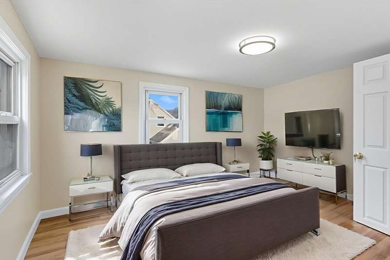 Don t miss the chance to own this charming 4-bedroom, 2-bath Cape in Abington. The main level welcomes you with a cozy living room featuring gleaming hardwood floors and a beautifully updated white eat-in kitchen accented with gold finishes and stainless steel appliances. Step right out to the back porch for seamless indoor-outdoor living perfect for entertaining or relaxing. Also on the first floor are two versatile bedrooms and a full bath, ideal for one-level living or creating a home office. Upstairs, you ll find two additional bedrooms and another full bath, offering flexibility to fit your lifestyle needs. The driveway provides plenty of parking for you and your guests, while the manageable backyard is just right for summer cookouts and playtime with pets. Conveniently located near restaurants, shopping, and more this home is ready to welcome its next chapter. All it s missing is you!