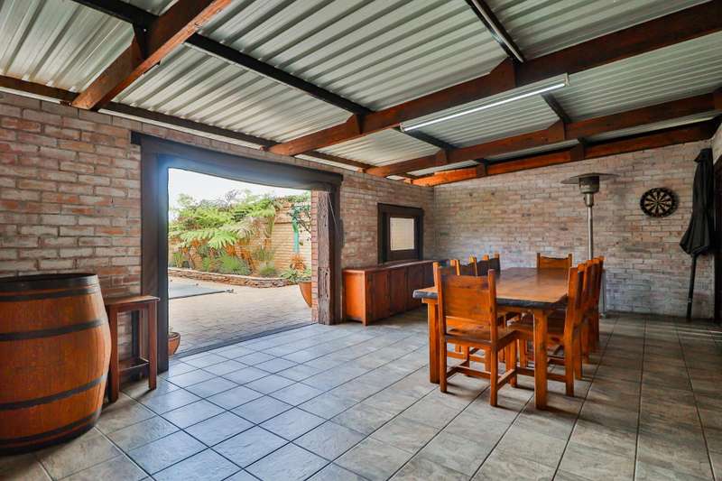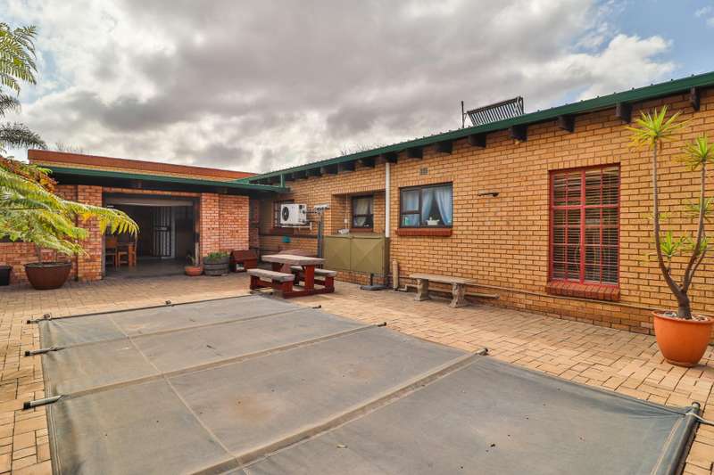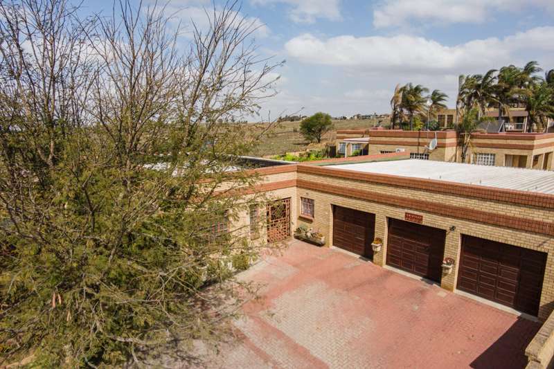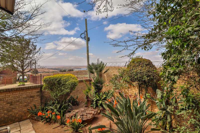 Welcome to the epitome of modern luxury living nestled within an exclusive complex boasting only four bespoke homes. This stunning residence, characterized by its sleek design and low maintenance appeal, offers a lifestyle of unparalleled comfort and convenience. As you step into this architectural masterpiece, you are greeted by a spacious interior featuring four bedrooms and three bathrooms, two of which are ensuite, providing ample space and privacy for the entire family. The open plan living areas seamlessly blend elegance with functionality, while the stylish kitchen, complete with ample cupboard space and a separate laundry, caters to the demands of modern living. Prepare to be enchanted by the entertainer's dream that awaits you, with expansive entertainment areas designed to host gatherings and create unforgettable memories. Step outside onto the generous patio, offering panoramic views of the picturesque Witbank Dam, providing the perfect backdrop for al fresco dining and relaxation. Indulge in the ultimate luxury with a sparkling pool equipped with a heat pump, inviting you to bask in its refreshing waters year-round. For added convenience, a prepaid meter, changeover switch for a generator, and a Jojo tank with a pump ensure uninterrupted utility services. Parking is a breeze with three garages and a carport, ideally suited for a caravan or additional vehicles. The meticulously landscaped garden, complete with a communal borehole, provides a tranquil retreat for both family and furry friends. Security is paramount, with electric fencing surrounding the complex and an alarm system offering peace of mind for residents. Don't miss the opportunity to make this exceptional home yours, where luxury, comfort, and convenience converge to create a lifestyle beyond compare.