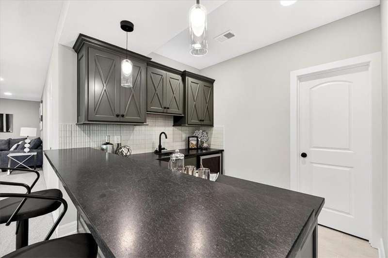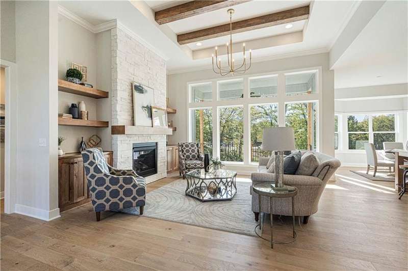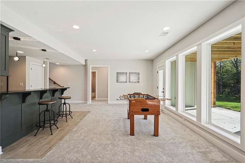READY TO MOVE IN!!! New Mark Homes award winning Morgan Reverse plan! You have found the ONE! Stunning open plan on beautiful wooded lot. Main level features incredible kitchen with quartz countertops, custom cabinetry and loads of storage. Large living room with fireplace and wall of windows. Owner's suite on main level will WOW you with its special wall detail/upgraded trim, gorgeous bath and huge closet. 2nd bedroom on main level is perfect for living or home office. Lower level walks out to wooded lot. Stunning full bar that will blow you away!!!!!! Large rec room AND 2 additional bedrooms and full bath. Do not miss this one!