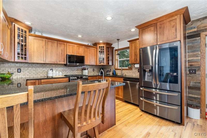 Stunning Oneida Lakefront Estate with Guest House & Breathtaking Views. Welcome to this one-of-a-kind waterfront retreat on the shores of Oneida Lake in Cleveland, just 4 miles from the vibrant charm of Sylvan Beach. Sits on 1.24 acres with an impressive 180 feet of pristine lake frontage, this fully renovated 3,300+ sq ft home offers luxury, comfort, and space for both relaxation and entertaining. Thoughtfully redesigned down to the studs, the main residence features 4 bedrooms, 2 full bathrooms, and 2 half baths across three beautifully finished levels. The inviting main floor boasts a spacious living room with gas fireplace, expansive windows, gleaming hardwood floors, and a gourmet kitchen perfect for the home chef. A large foyer, first-floor home office, and primary bedroom suite add convenience and flexibility. Wake up to panoramic lake views and enjoy them year-round from the two oversized decks or the walk-out basement, which offers a cozy family room with fireplace, a kitchenette, and easy access to the backyard. The home also includes a whole-house generator, and a stamped concrete patio, ideal for outdoor dining, relaxing, or launching into your favorite waterfront activities.For car enthusiasts or hobbyists, the oversized three-car garage with 9' overhead doors provides exceptional storage and workspace. Plus a walk in attic. But that's not all?this property also includes a charming 1,580 sq ft guest house featuring 2 bedrooms, 1.5 baths, a full kitchen, Livingroom, laundry room, and its own lake views?perfect for guests, rental income, or extended family. Additionally, there is a separate nearby parcel with a pole barn, available for purchase separately. Don't miss this rare opportunity to own a beautifully updated lakefront estate with unmatched privacy, space, and views.