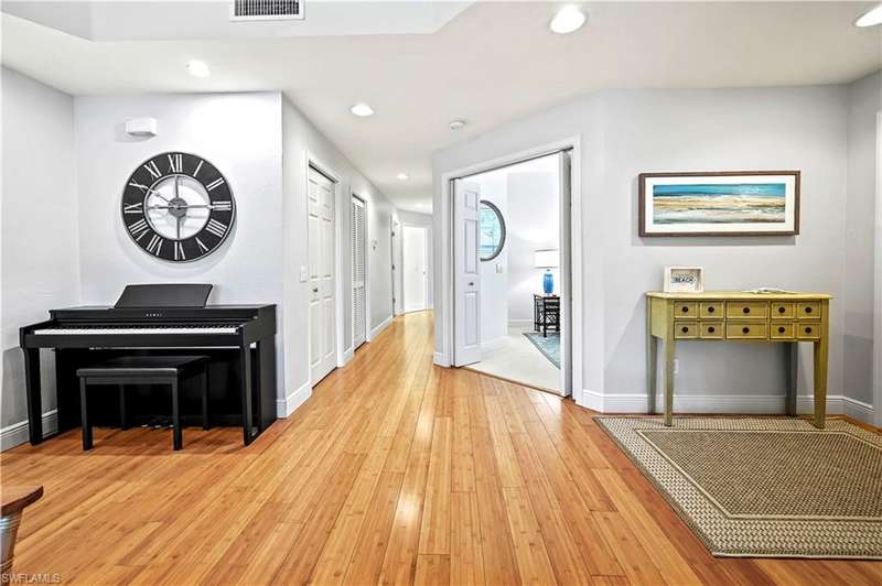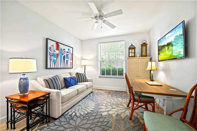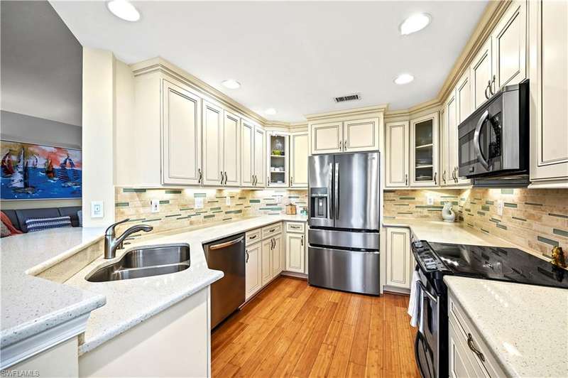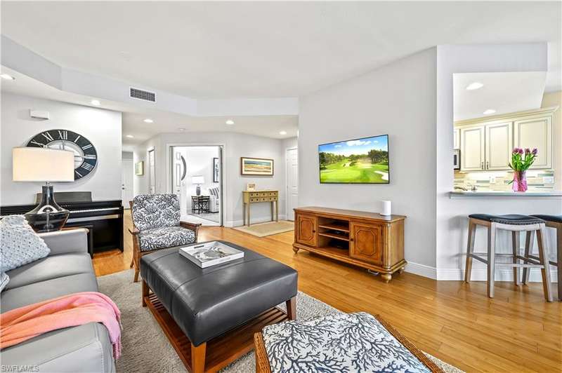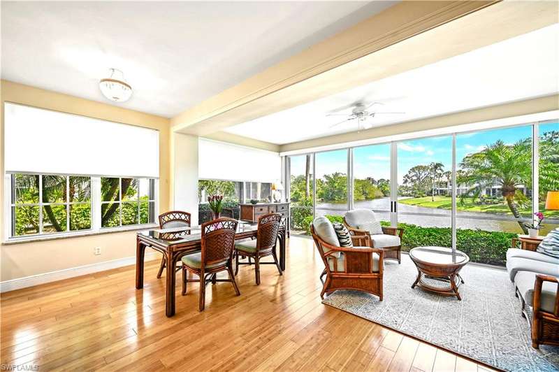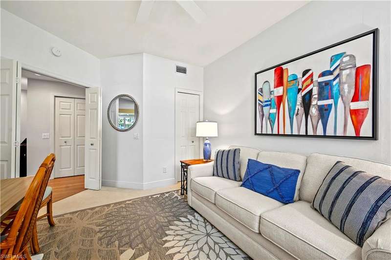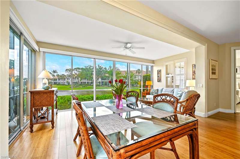 Price Improvement & worth a look! One of the nicest first floor units in Bonita Bay. LONG LAKE VIEWS where nothing is out of place. END UNIT, SOLD TURNKEY and NO INTERIOR FLOODING DURING IAN, HELENE OR MILTON due to higher elevation. 4490 Riverwatch Dr #101 feels like home the moment you step inside and with three bedrooms and two full baths, it s the perfect size. You will notice the refurbished bamboo floors (March 2025), the tasteful furniture, and pride of ownership as it s SPOTLESS! The kitchen has updated stainless steel appliances, a functional breakfast bar, complete with amazing lake views. Fresh paint and a comfortable dining and living room are great for entertaining. This unit is light and airy with great natural light soaking in from the lanai and large northern windows. A unique benefit of being an END UNIT. The lanai faces east, is fully enclosed and the thresholds have been removed the flooring effortlessly flows making the space feel open and inviting as if you we