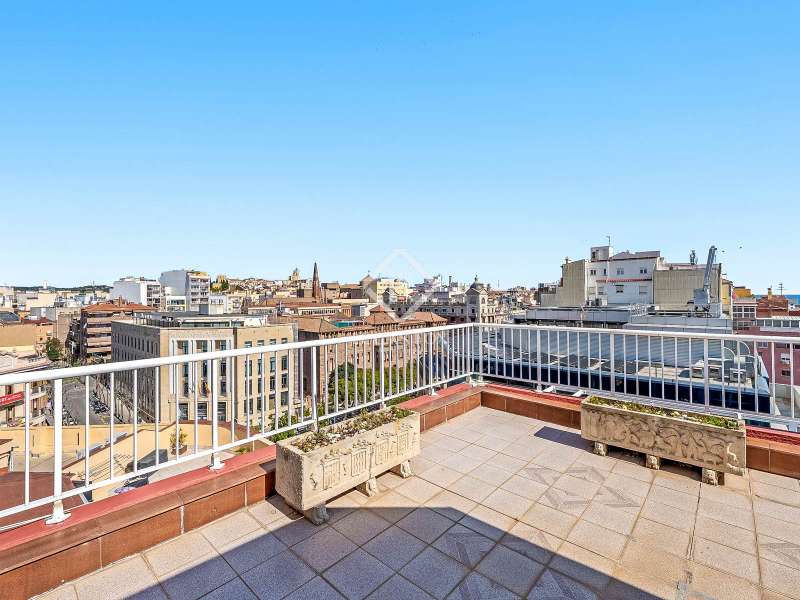 Lucas Fox exclusively presents this 319 m² penthouse in the lively city centre of Tarragona. Originally two properties, they were combined into a single property, now featuring open, flowing spaces. The property is surrounded by three stunning terraces with privileged views of the Mediterranean Sea. At its feet, the city with its golden rooftops, historic squares, and iconic cathedral. The day area houses a magnificent multi-room living space that combines the living room, dining room , and library. This space stands out for its natural light and city views, as it connects to the generous terrace. The dining room area leads into the large, bright, and functional kitchen. It includes a cooking area, an office space, and a wine cellar. It also has an annex pantry, located in the service area, along with a single bedroom and a separate utility room with access to the second terrace, located at the rear of the building and offering northwest views of the city. Its four bedrooms are distributed across the property to maximize privacy. Entering the bedroom area, a naturally lit corridor leads to the various bedrooms. The master bedroom has a private bathroom and access to the third terrace. The second bedroom also access the terrace and leads to a private office located in the gallery, with panoramic views of the city and the sea. The third bedroom is located on the side façade overlooking the magnificent Rambla Nova, while the last bedroom faces the rear façade of the building. This space is completed with another bathroom and several built-in closets. The property features architectural details and high-quality finishes, such as traditional oak and slatted floors, high ceilings, and wooden cornices with indirect lighting. It includes a concessionary parking space at the Central Market. Contact Lucas Fox to arrange a viewing.