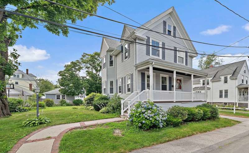 This charming farm-style home with it's front porch is welcoming you to take a look! Although this home was built in 1912, it has been incredibly maintained and you can tell as soon as you walk through the front door. All molding and woodwork is original and in excellent condition. The ceilings in the living room, dining room and hallway are 10' tall with a grand staircase that greets you at the entrance way. All rooms, including the three bedrooms on the second floor, have lots of natural sunlight because of the over-sized windows that make the home light and bright. The kitchen is a good size that opens to the dining room and has a slider to a fabulous sunroom that then leads to a large deck that overlooks the back yard. Everything about this home is in great shape, including the exterior, the gardens and the back yard and the neighborhood is just steps from the Hollis Elementary school, shopping and other amenities. Come See for Yourself - we're waiting!