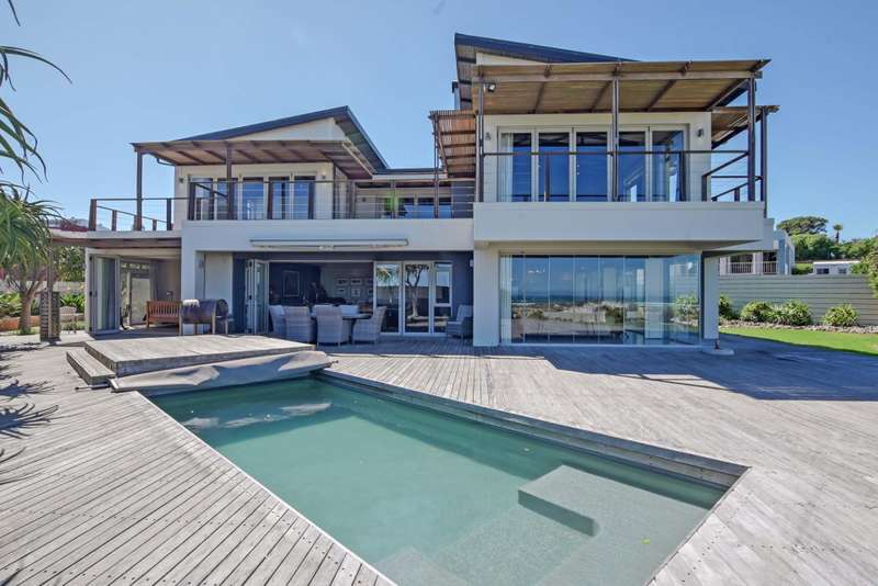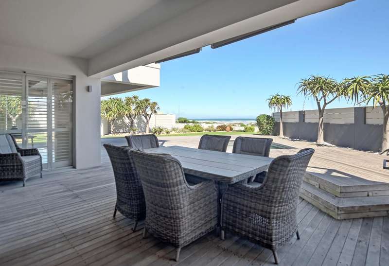A Coastal Masterpiece in Melkbos Positioned directly on the beachfront, this double-storey villa captures uninterrupted views of the Atlantic Ocean with Table Mountain as its backdrop. Nestled in an exclusive cul-de-sac, it offers both privacy and prestige in one of Melkbosstrand?ÇÖs most sought-after locations. Sophisticated Living Floor-to-ceiling glass defines the architecture, seamlessly drawing the ocean and mountain into the home from every angle. Natural light floods the open-plan interiors, while expansive lounges and a formal dining area flow effortlessly into an indoor braai. Whether entertaining or relaxing, every moment is framed by sweeping views. Private Accommodation Six en-suite bedrooms provide comfort and seclusion. On the ground floor, two generous suites open directly to the garden, ideal for guests or multi-generational living. Upstairs, the master suite captivates with panoramic views and a must-see walk-in closet, while the remaining bedrooms share a stylish lounge and large balcony overlooking the ocean. Outdoor Elegance Stacking glass doors dissolve the boundary between indoors and out, opening onto a landscaped garden, sparkling pool, and an expansive Balau deck set directly against the beach. Here, uninterrupted sunsets and the rhythm of the waves define a lifestyle of year-round coastal living. Key Features Six en-suite bedrooms Pool with Balau deck directly against the beach Double garage plus secure additional parking Indoor braai Gourmet kitchen with walk-in pantry, scullery, and utility areas Well-point water system & three-phase power Exclusive beachfront position in a private cul-de-sac This residence is more than a home ?Çö it is one of Melkbosstrand?ÇÖs most exceptional beachfront properties, a true signature of prestige and a legacy to be treasured for generations.