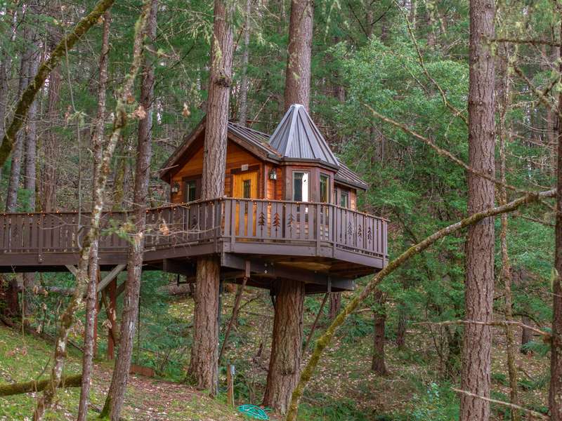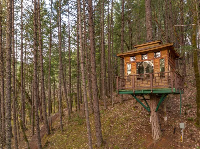 Vertical Horizons Treehouse Paradise! Situated on nearly 23 acres, this gated rural property is home to a one-of-a-kind permitted bed and breakfast, perfect for Airbnb, VRBO, or short-term rental income. Four unique treehouses dot the hillside, each with its own charm. The main house offers a peaceful retreat surrounded by lush lawns and flowering fruit trees, ideal as a private residence or the main lodge for guests. The property features a large fenced pasture, greenhouse, detached garage, spacious barn with stalls and turnout, carport, wood storage, and more. A true blend of ranch and resort living, it's perfect for those who value rural life—growing your own food, raising livestock, and enjoying privacy—while benefiting from an established income-producing resort. Located in the scenic Illinois Valley with a mild four-season climate and easy access to the Illinois River and the stunning Oregon Coast.