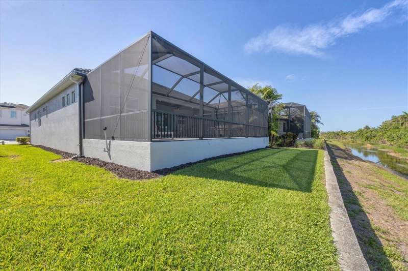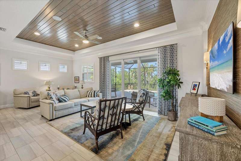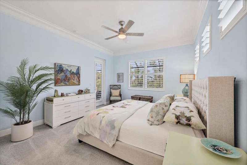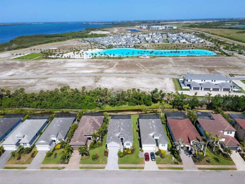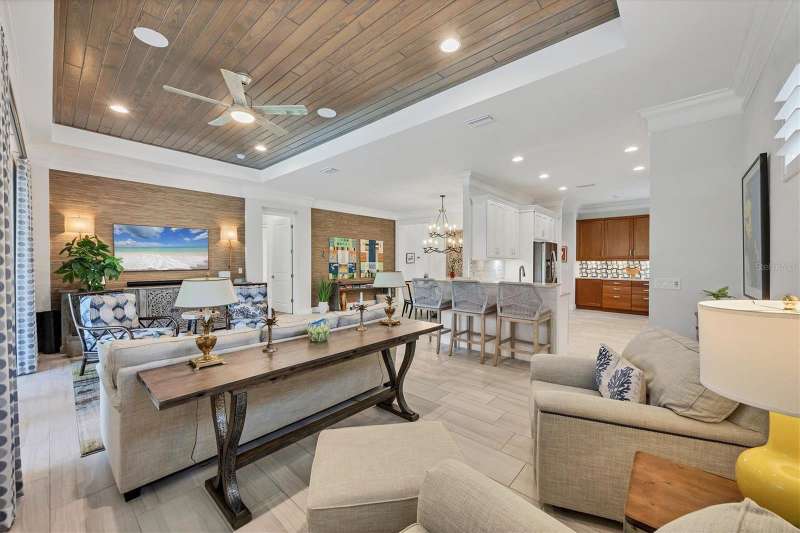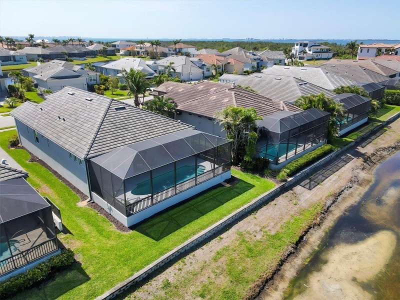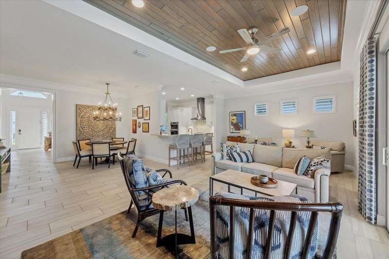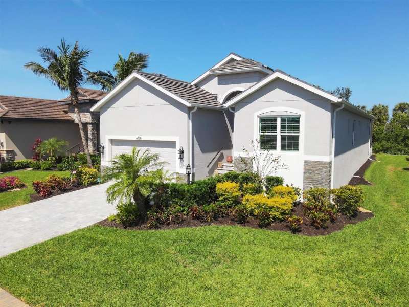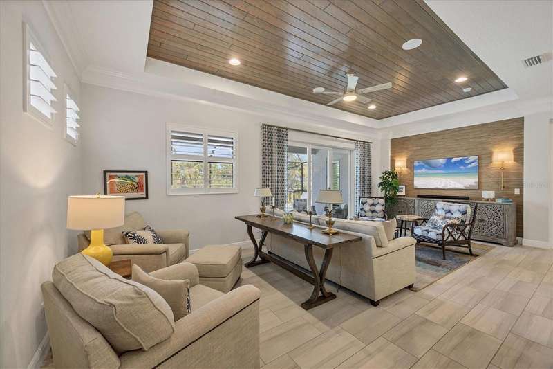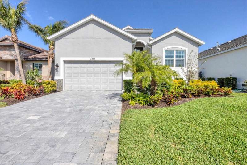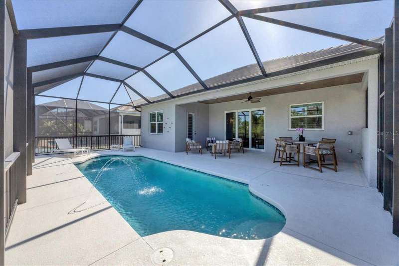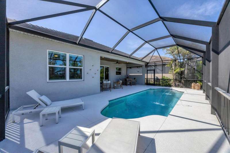 Under contract-accepting backup offers. AMAZING VALUE in beautiful Legends Bay gated community, look no further! This 3 bedroom, 2 bathroom built by Medallion Homes in 2021 and designed by West Point Design offers comfortable living, with luxury touches. When entering, you are greeted with 13ft ceilings in the foyer. The great room opens to a spacious lanai with beautiful heated pool. High impact windows and sliding doors throughout the house, with custom plantation shutters. The kitchen is a chef's dream, equipped with stainless steel appliances, a gas cooktop and quartz counter tops. Master bedroom offers two walk-in closets and a doorless shower in the master bathroom. Improvements include crown molding, wood paneled ceiling in living room and lanai, upgraded light & fan fixtures, stacked stone at front, sound system, upgraded security system, epoxy garage floor, garage storage units/hooks, etc. Located within minutes from IMG Academies and a short distance from Bradenton beaches, Sarasota downtown and SRQ airport.