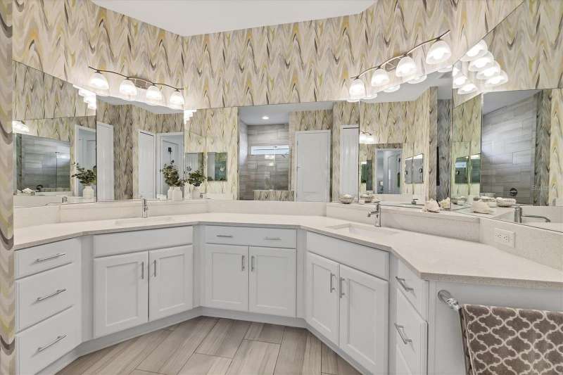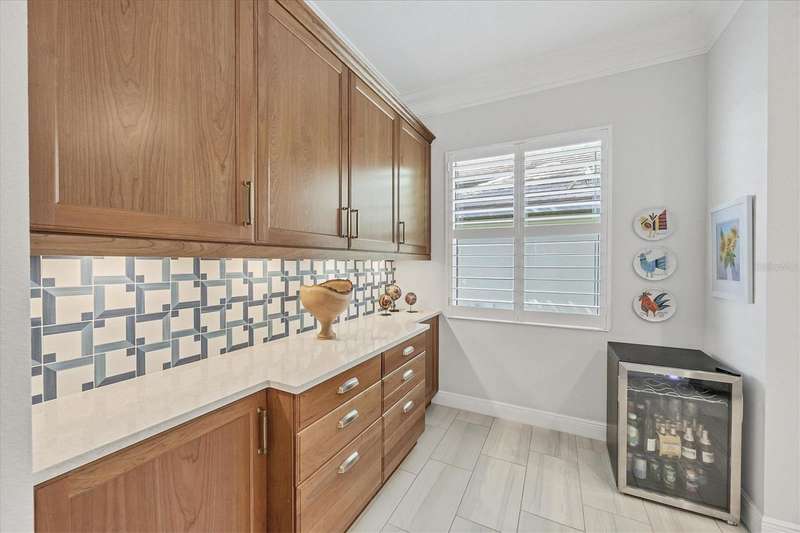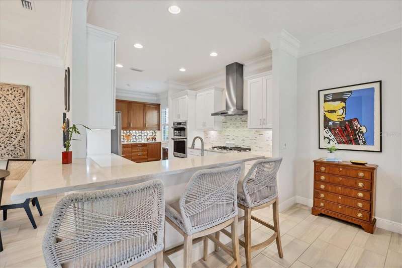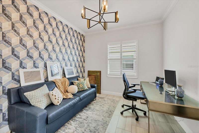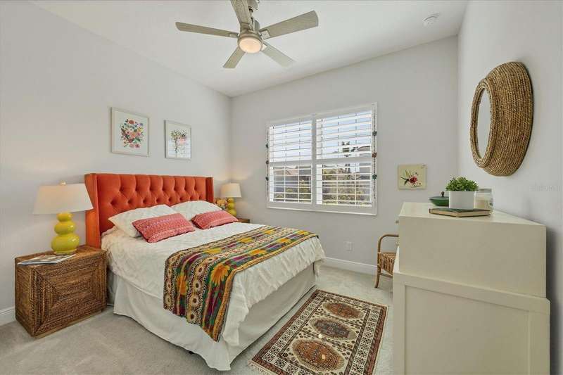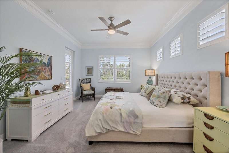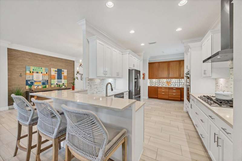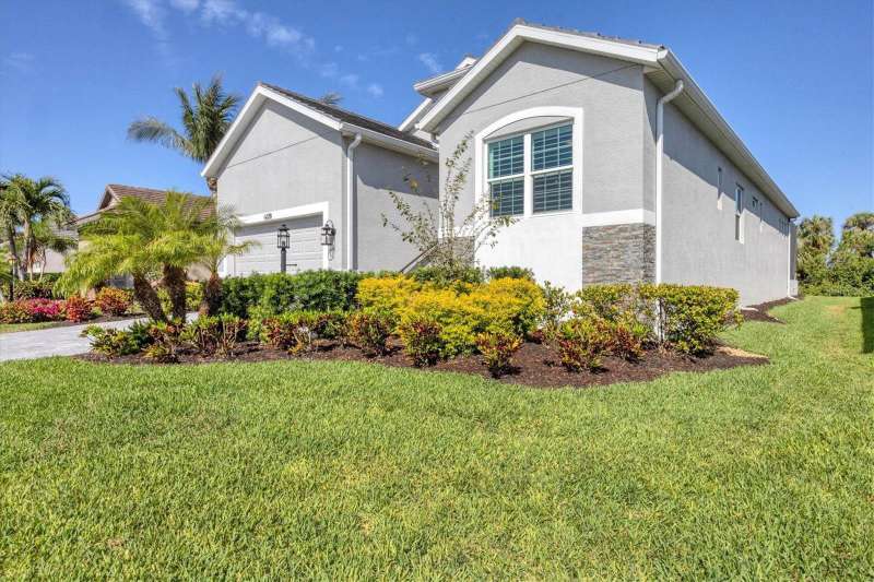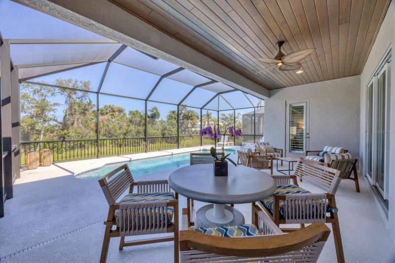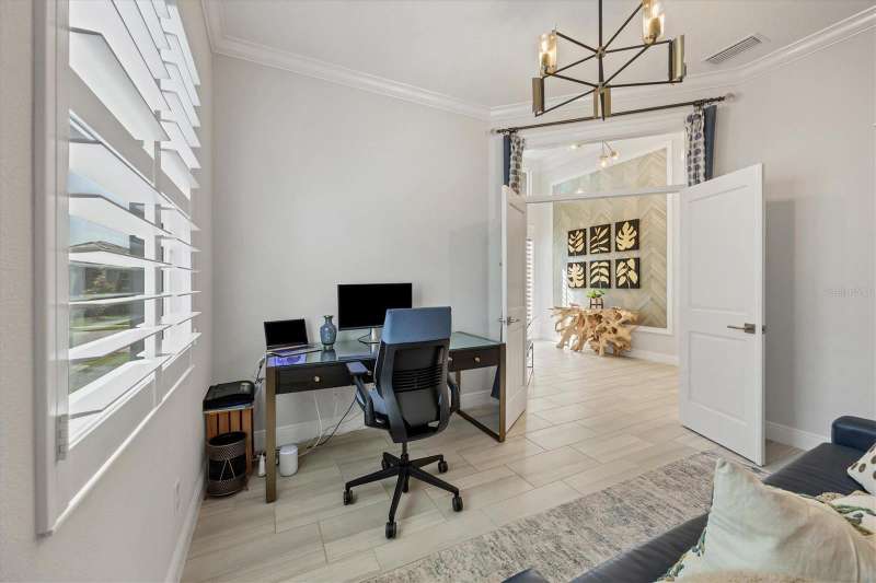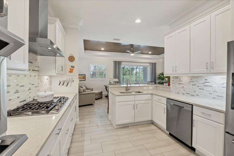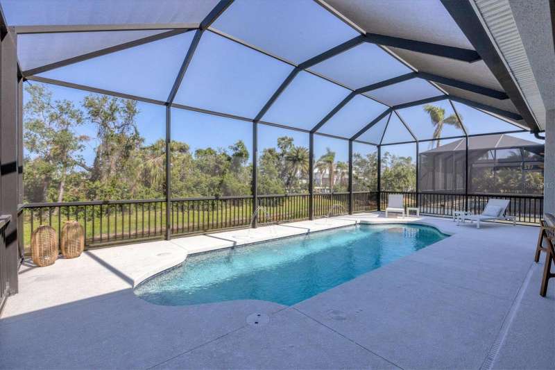 Under contract-accepting backup offers. AMAZING VALUE in beautiful Legends Bay gated community, look no further! This 3 bedroom, 2 bathroom built by Medallion Homes in 2021 and designed by West Point Design offers comfortable living, with luxury touches. When entering, you are greeted with 13ft ceilings in the foyer. The great room opens to a spacious lanai with beautiful heated pool. High impact windows and sliding doors throughout the house, with custom plantation shutters. The kitchen is a chef's dream, equipped with stainless steel appliances, a gas cooktop and quartz counter tops. Master bedroom offers two walk-in closets and a doorless shower in the master bathroom. Improvements include crown molding, wood paneled ceiling in living room and lanai, upgraded light & fan fixtures, stacked stone at front, sound system, upgraded security system, epoxy garage floor, garage storage units/hooks, etc. Located within minutes from IMG Academies and a short distance from Bradenton beaches, Sarasota downtown and SRQ airport.