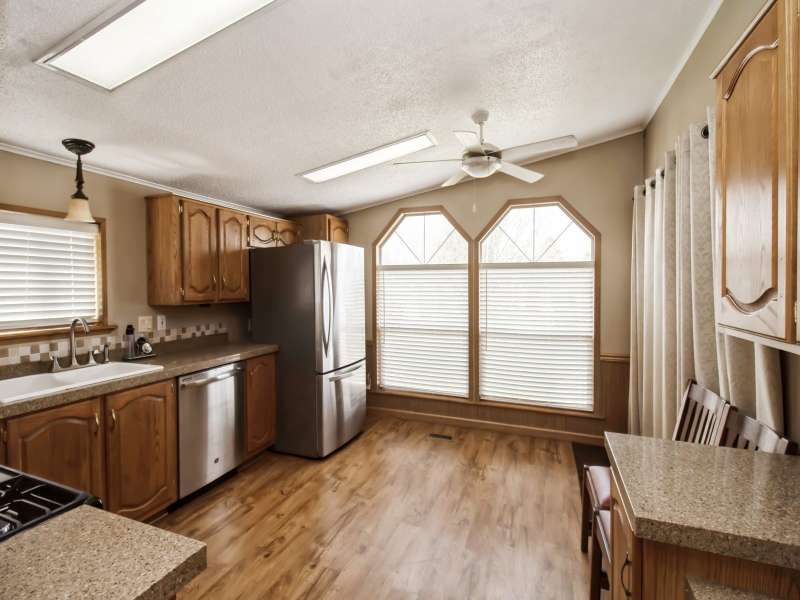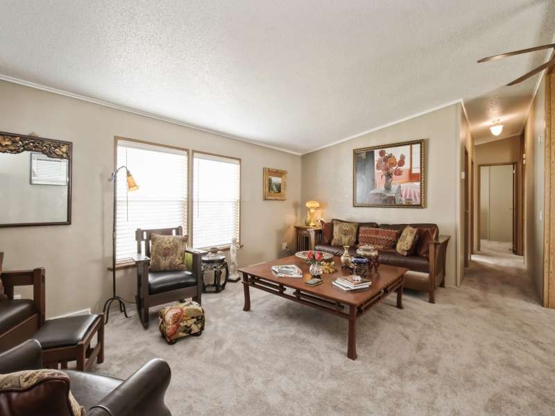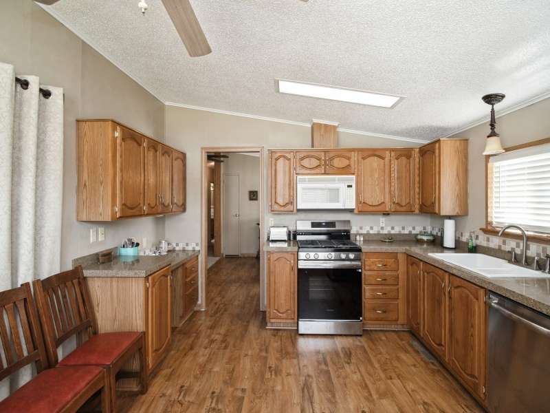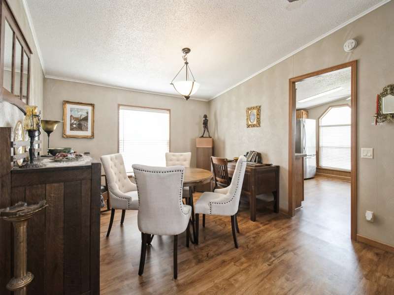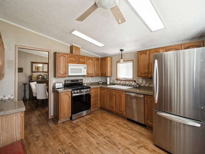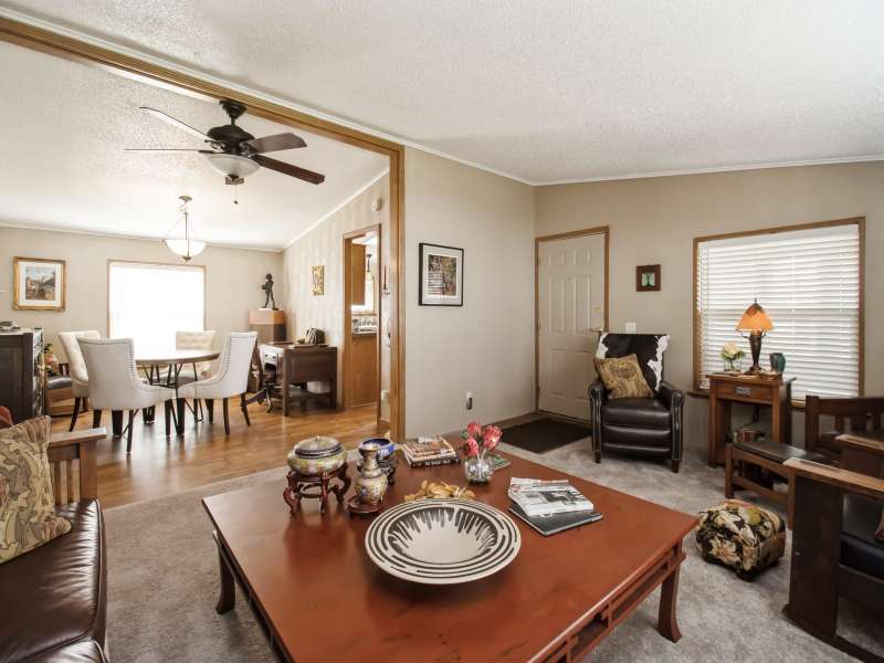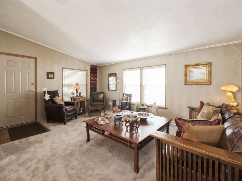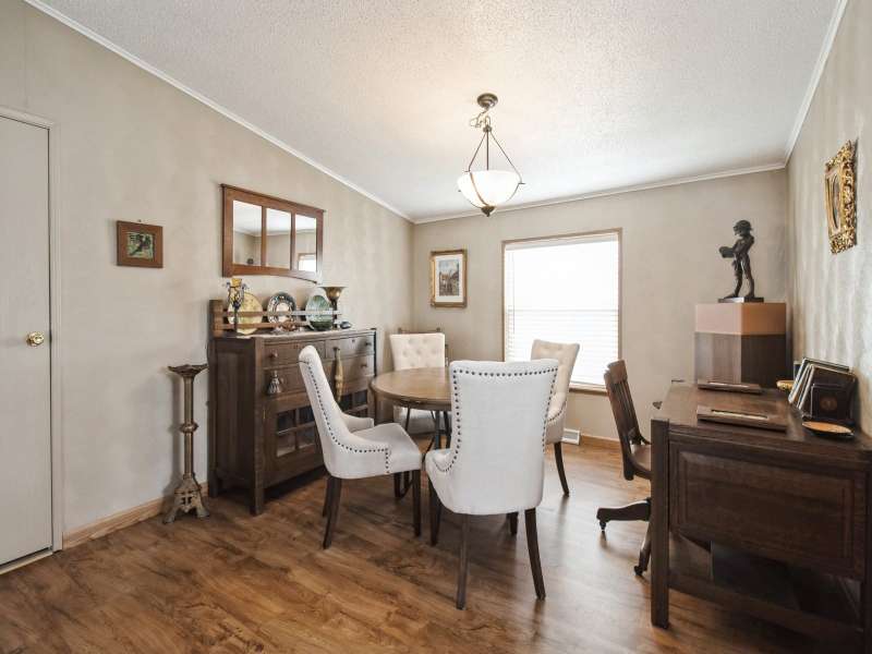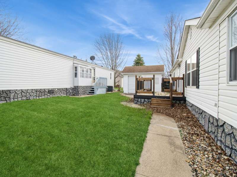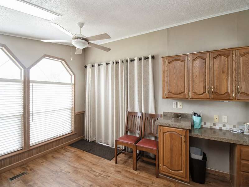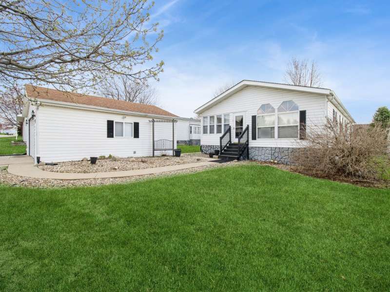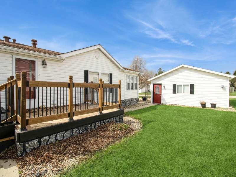 Comfortable and well-maintained mobile home in Country Club Crossing in Altoona. Beautiful landscaping all around the home with extra decking for raised gardens. Front deck leads you to the enclosed sunroom with ceiling fan and great for relaxing. Open and spacious living room and dining room with vaulted ceiling.
