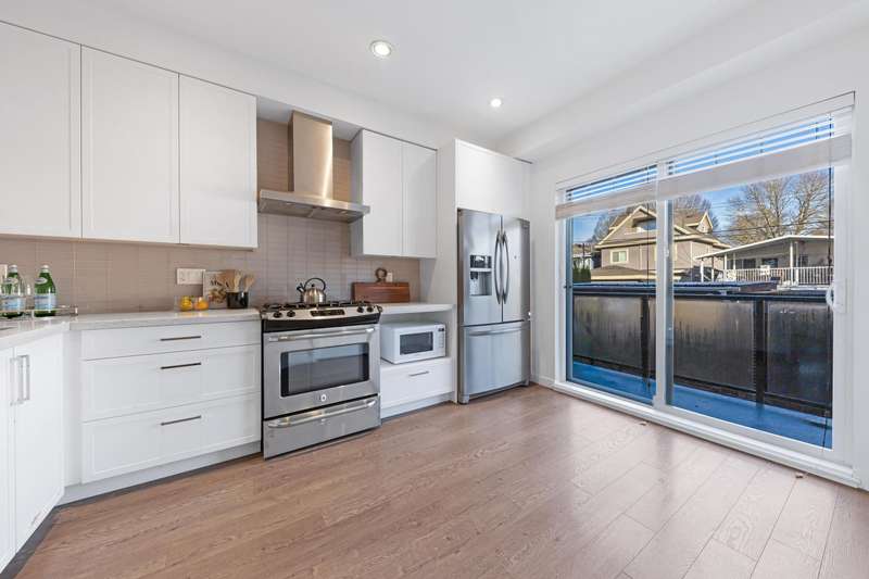 $150k BELOW ASSESSED VALUE. Modern Fourplex/Townhouse living in Prime Collingwood area. Discover contemporary comfort in this stunning 4 bedroom, 3.5 bathroom townhouse. Nestled in the desirable Collingwood neighborhood, this 2017-built home offers spacious living areas, stylish finishes, and a prime location. Enjoy over 2000 square feet of living space, perfect for families. A walk-out basement unit could generate around $1800 extra income to help your mortgage. Sleek kitchen with stainless steel appliances, open-concept living, and ample natural light. Close to schools, parks, shopping, and transit. This townhome is only one of the four units, making it more intimate safe to live amongst your neighbors, and low maintenance with self-managed strata. Don't miss this opportunity.