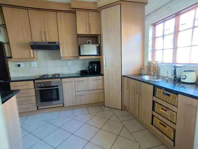 Step into comfort and style with this very neat and spacious 3-bedroom home, perfectly situated in a sought-after Security Estate with 24-hour gate access. The main bedroom boasts a modern en-suite bathroom, while the other two bedrooms share a second stylish bathroom. The heart of the home is a well-fitted, open-plan kitchen that flows seamlessly into the living area, with a separate scullery for convenience. Enjoy year-round entertaining on the covered patio with a built-in braai. The area around the house is fully paved. A double garage provides secure parking and extra storage space, making this home as practical as it is beautiful. With security, style, and comfort all in one, this is the perfect place to call home.