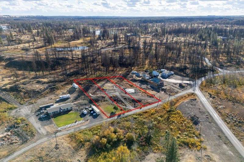 You don't want to miss out on this fabulous secondary waterfront property with a view of Silver Lake. This property is made up of 3 parcels which are being sold together as 1 piece. Total lot size is 58,020 (1.33 acres). Combined, this lot has water, power, brand new septic, two RV clean-outs, & a 36x40 shop foundation. You can build your home on top of the knoll so you have an unobstructed view of Silver Lake. The Grays wild fire destroyed many homes & structures in this area; this being one of the homes. You can see the new homes being re-built or new structures being installed throughout the neighborhood. There was a home & a shop previously on this land; however all 3 lots can be built on separately - which would be the buyer's choice. The current owners have cleaned up the lots & have performed many tests to be able to rebuild. The community itself has 2 community parks with water access, private to residents only. Within 20 mins of Spokane City & International Airport. Bring your own builder!