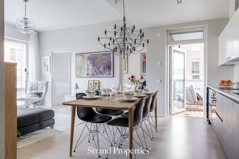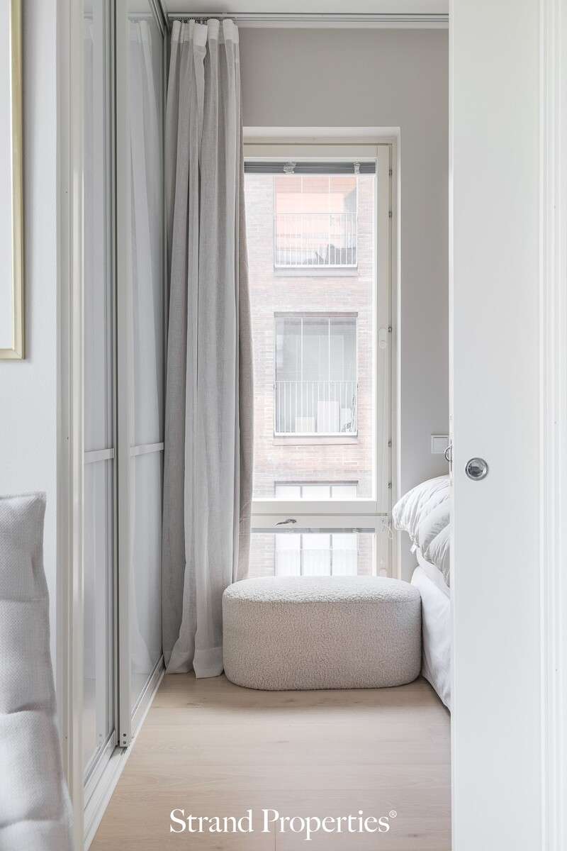 Modernia kaupunkiasumista merellisessä Punavuoressa Vuonna 2022 valmistuneessa As. Oy Helsingin Courtissa sijaitseva koti yhdistää laadukkaat materiaalit, modernit mukavuudet ja Punavuoren urbaanin tunnelman. Asunto lämpenee kaukolämmöllä ja viilenee kesäkuumilla kaukoviileän ansiosta. Asunnon pohjaratkaisu on suunniteltu maksimoimaan olohuoneen ja ruokailutilan väljyys, siellä missä elämä tapahtuu. Suuret olohuoneen ikkunat avautuvat upeasti suoraan Telakkapuistoon. Avokeittiö asettuu käytännöllisesti yhdelle seinustalle, jolloin olohuoneeseen ja ruokailutilalle jää avaraa yhtenäistä tilaa. Suuret ikkunat ja lasitettu parveke tiiliseinien suojassa luovat kauniin kehyksen arkeen ja juhlaan. Parvekkeella on oma tunnelmansa – suojaisa paikka aamukahville tai iltaviinille kaupungin sykkeen tuntumassa. Tyylikkäästi viimeistellyssä avokeittiössä on integroitu kodinkoneistus, viinikaappi ja modernit pinnat, jotka miellyttävät vaativaakin silmää.