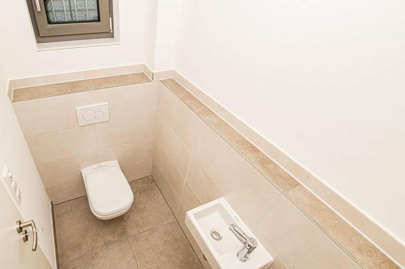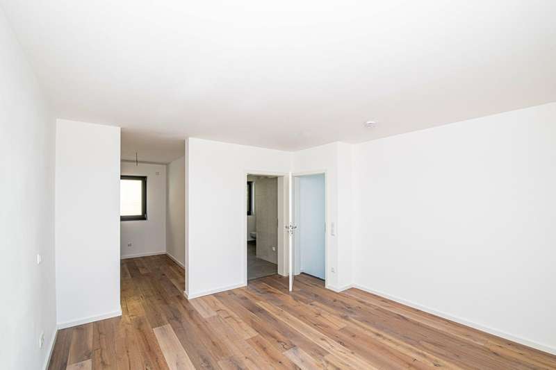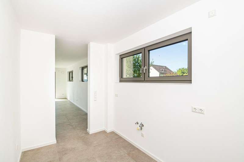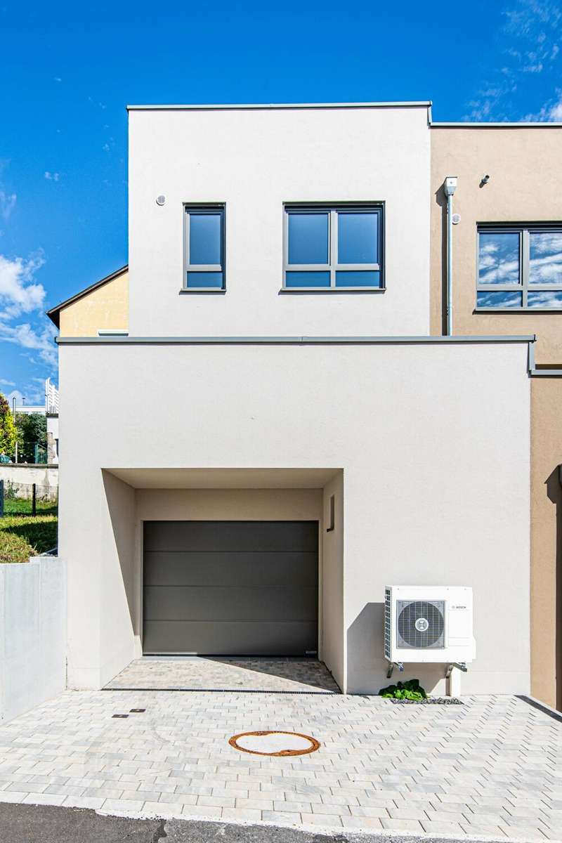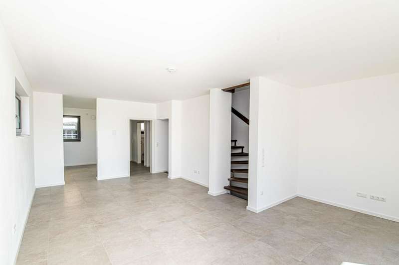Welcome to your new home: This modern end-terrace house with first occupancy presents itself as a property of the upper equipment class and combines a well thought-out room layout with contemporary comfort standards. The house was completed in 2024 and is situated on a plot of approx. 246 m². With a generous living space of approx. 150 m², this property is ideal for families, couples or discerning individuals who value quality and detail. The focal point of the house is the open-plan living, dining and kitchen area, which creates a pleasantly bright and friendly atmosphere thanks to large triple-glazed windows. The high-quality underfloor heating ensures a comfortable indoor climate in all rooms. An elegant wooden staircase leads to both the basement and the upper floor, which houses the private retreat area. The space on offer extends over four rooms, including three bedrooms and two daylight bathrooms. The parents' area boasts well thought-out planning and includes a separate dressing room, an en-suite bathroom and access to a spacious terrace. This offers space for relaxing moments in the open air and extends the private living space in a pleasant way. There are two well-designed rooms and a separate children's bathroom for children, allowing for short distances and independence in everyday life. There is also a guest WC with contemporary fittings on the first floor. The area with a full basement offers a wide range of possibilities - whether as a utility room, storage area or for individual use, there is plenty of space available here. The efficiency and sustainability of the building are underlined by a modern photovoltaic system with 3.0 kWp and an environmentally friendly heat pump. A central ventilation system also contributes to a pleasant living climate. The features also include a large garage with direct access to the house - a plus for both comfort and security. The solid construction combined with the first-class condition ensures durability, energy efficiency and low ancillary costs. The property's location offers an ideal balance between urban infrastructure and short distances to shopping facilities, schools and leisure activities. Numerous green spaces in the surrounding area are ideal for walks or sporting activities and support the high quality of life offered by this property. With this house, you are purchasing a property that meets modern living requirements and offers numerous extras. See for yourself during a viewing - we look forward to hearing from you and will be happy to answer any questions you may have. On request, you can view this property in advance in a 360-degree panoramic tour - from the comfort of your own home!