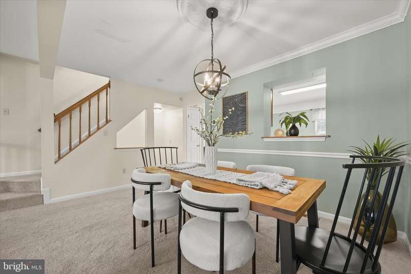 Discover the perfect blend of comfort, style, and convenience in this beautifully updated townhome tucked within the desirable Riverchase community. This three-bedroom, two-and-a-half-bath residence backs to open space and welcomes you with sun-filled windows and a serene, neutral color palette that creates an inviting atmosphere from the moment you arrive. The spacious eat-in kitchen is a true gathering place, featuring stainless steel appliances, a pantry, and a bright breakfast nook. A sliding glass door opens to the new paver patio, ideal for enjoying morning coffee or hosting summer barbecues. Flowing seamlessly from the kitchen, the open-concept living and dining rooms are enhanced with crown molding, chair railing, and a charming box bay window that fills the space with natural light. Upstairs, the primary bedroom suite offers a peaceful retreat complete with a private full bath and double closet. Two additional bedrooms and a second full bath provide plenty of room for family, guests, or a home office. The lower level makes a strong first impression with box wainscoting and flexible living space with new carpeting perfect for a movie room, playroom, or home office. A convenient half bath and interior access to the one-car garage add to the functionality. The garage also includes a workbench area, while the extended driveway and additional visitor parking directly across the street ensure plenty of space for guests. Pull-down stairs to the attic provide excellent storage options, helping to keep everything neatly organized. Recent updates, many within the last ten years, offer peace of mind and include a new HVAC system, water heater, roof, upper-level carpeting, sliding glass door, and patio. Enjoy the benefits of a fantastic commuter location near major routes including I-95, I-695, I-295, and I-195, with easy access to BWI Airport, UMBC, and the popular Guinness Open Gate Brewery. With shopping, dining, and entertainment all close by, this home truly offers the best of both convenience and comfort.