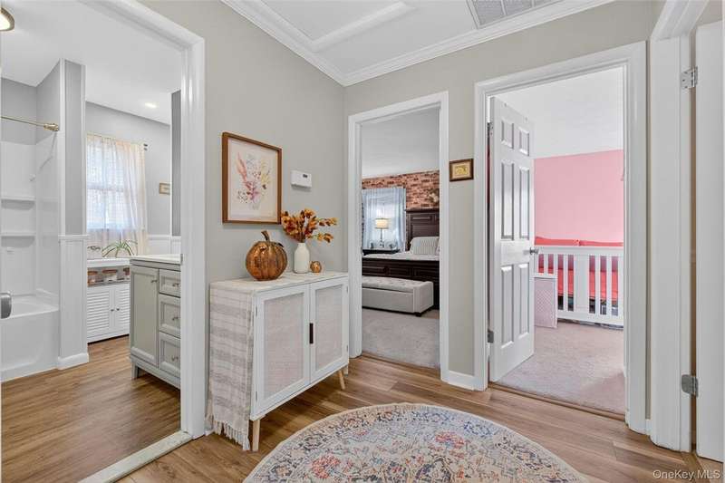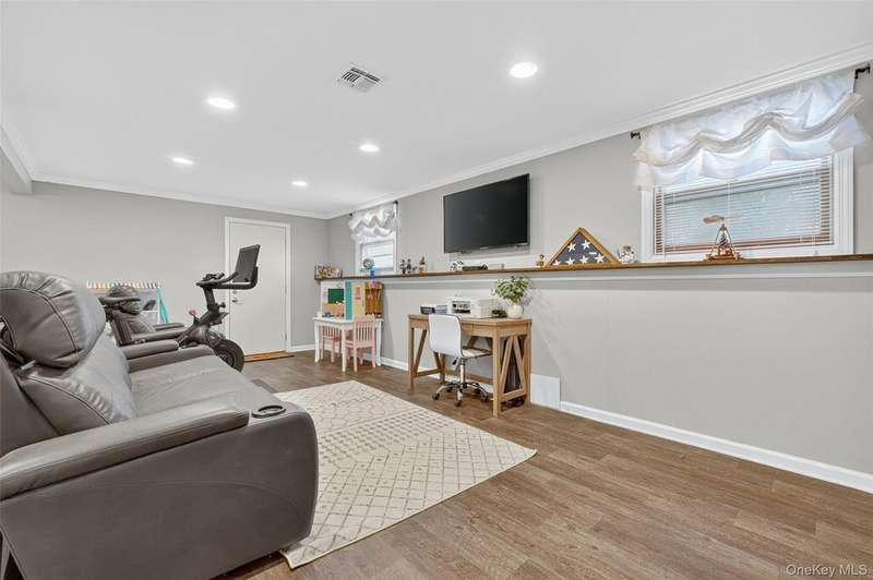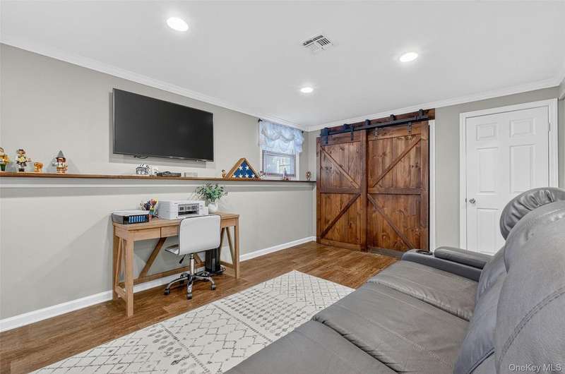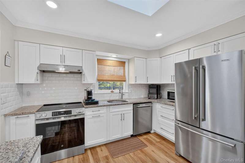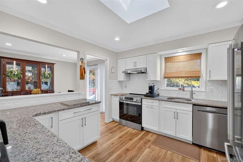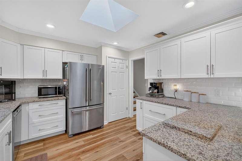 Welcome to this beautifully updated split-level home in New Castle, located in the desirable Washingtonville School District bordering Forever Green space. Featuring 3 bedrooms and 2 full bathrooms, this home offers comfort, style and space both inside and out. The heart of the home is the fully renovated, custom kitchen (completed less than a year ago) with brand-new cabinets, granite countertops, stainless steel appliances and modern finishes. Crown molding and recessed lighting extend throughout the main level, adding an elegant touch. The main level also features new luxury vinyl plank flooring, with matching LVP flooring continuing into the lower level. The lower level offers a large, open family room with recessed lighting, a full bathroom and a laundry room complete with an LG washer and dryer. The open dining area leads to a sliding glass door that opens to an entertainer's dream backyard ? a spacious 40' x 35' deck, 18' x 36' above-ground pool and a beautiful, level yard perfect for gatherings and relaxation. Additional highlights include newer central air conditioning, a 24' x 24' crawlspace for storage, three attic spaces for even more storage options, and a one-car garage. With thoughtful updates throughout and plenty of space to entertain or unwind, this move-in ready home is one you don't want to miss!