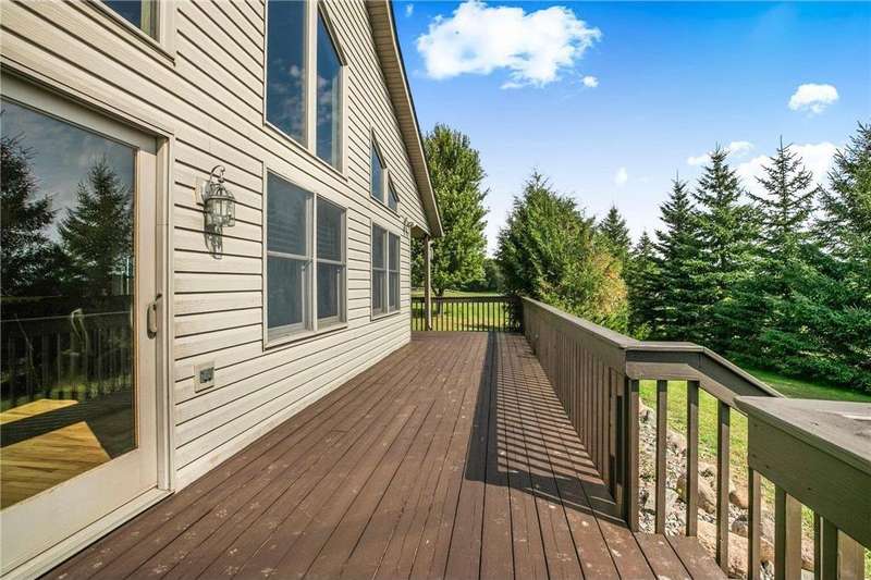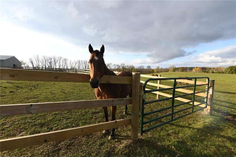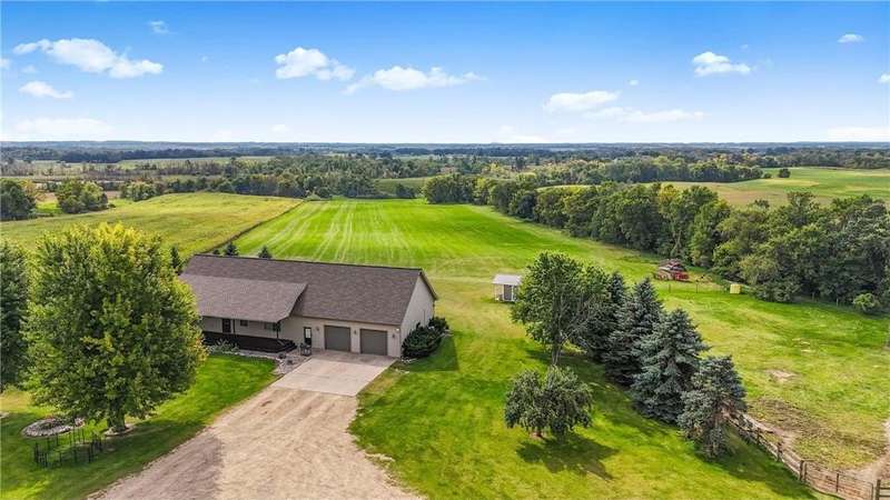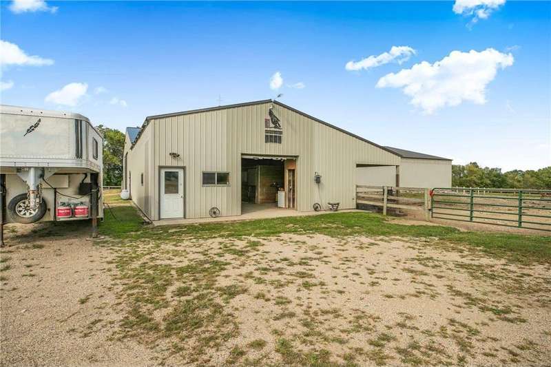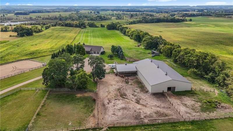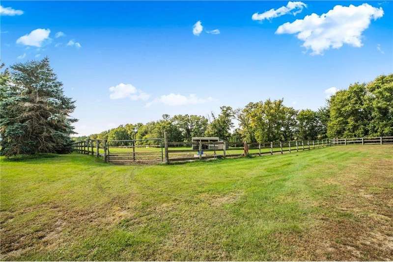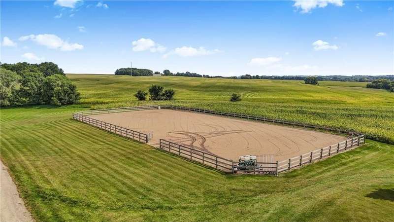 Discover this Ultimate Rural Retreat! This exceptional property has over 37 acres spread across two parcels. The property includes approximately 20 acres of tillable land and approximately 11 acres of pasture. Perfect for the Horse enthusiasts with an Indoor Riding Arena, an Outdoor Riding Arena, smaller paddocks, 6 horse stalls and a heated tack room with a bathroom! Enjoy the breathtaking Million Dollar view from the Kitchen, Dining Room, and Living Room! Trapezoid windows, vaulted ceilings and recently refinished wood floors make the interior breathtaking as well! Knotty Pine doors and Kitchen Cabinets add to the country experience! The home offers four bedrooms and three full bathrooms, including a private primary suite! The finished basement is a walkout for added convenience. The large covered porch and expansive deck are perfect for entertaining or relaxing outdoors! There is a large two car heated garage with it's own air conditioning system! The home has steel siding and all of the roofs were replaced in 2021. This is a rare opportunity that combines a beautiful home with country charm and unbeatable equestrian or hobby farm amenities! Don't miss your chance to make this dream property yours! Schedule your private tour today!