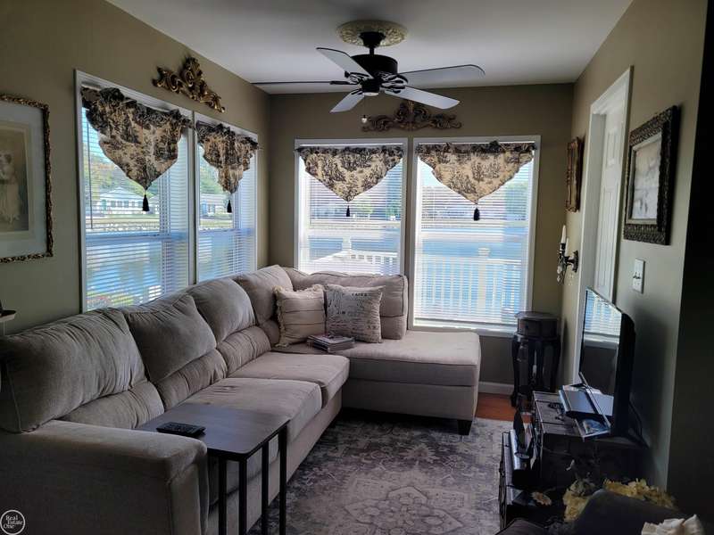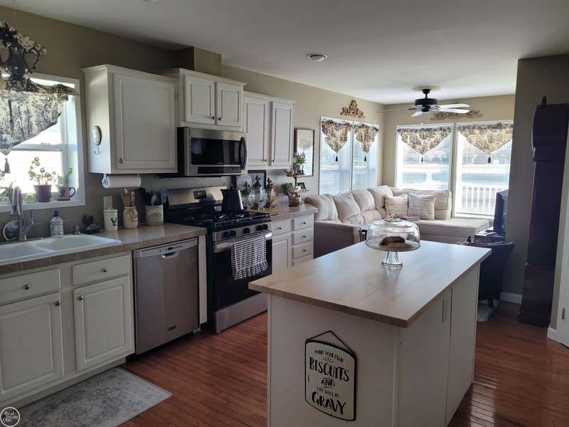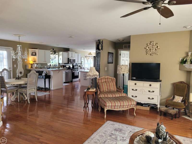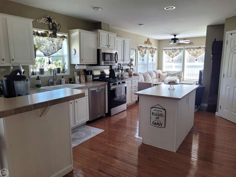 Welcome to Lakeside Living! This wonderfully maintained lakefront home boasts an open concept floor plan with beautiful hardwood floors and drywall throughout. The spacious layout includes: A large great room with natural fireplace. Dining area with door to the side deck. Modern kitchen with appliances, an abundance of cabinets, walk-in pantry, island and coffee bar with adjoining morning room overlooking the lake. The primary bedroom allows for privacy with a full bathroom and walk-in closet. Attached Garage. Enjoy Crystral Lake from the deck, shore, dock, or while boating or fishing. Share the community pool, playground, fitness center, library, clubhouse or venture over to the Wadhams to Avoca Trail for a walk or bike ride.