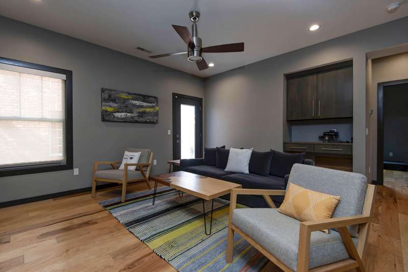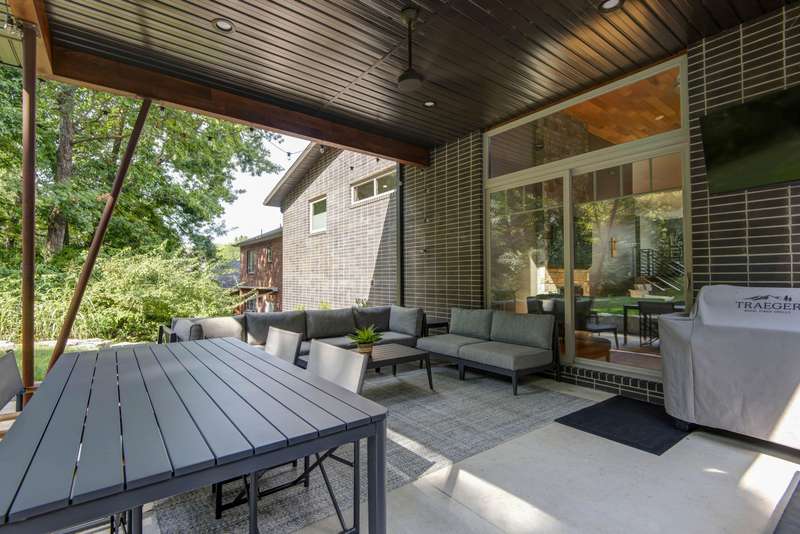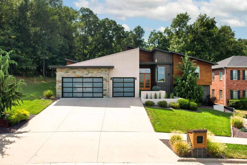 Welcome to 5521 S. Ridge Top Avenue in Lake Ridge Estates! This Frank Lloyd Wright inspired contemporary home features a split four bedroom floor plan, each with their own baths. From the front double door, you will find a spacious open living area with vaulted ceiling accented with wood, a gas fireplace with floor to ceiling stone, beautiful hardwood floors throughout, a half bath with back lit mirror all located adjacent to the gourmet kitchen with stainless appliances, granite countertops with center island, eat-in dining area with tons of storage space, all overlooking the covered backyard patio with tv hookup, two firepits and waterfall perfect for Summer entertaining!! On the opposite side of the kitchen leading to the spacious three car garage is the oversized laundry area complete with sink, hanging rack and built-in bench with storage. Moving to the lower level of the home, there is the second living area, complete with bar area with additional cabinetry storage, gas fireplace, an outside entrance to the side of the home along with two of the four bedrooms complete with two full baths. Additional storage is located in the fully encapsulated crawlspace with separate storm shelter room inside. Traveling upstairs, you will find the Master Suite complete with dual vanities, large walk-in closet, free standing bathtub and a recently remodeled walk-in shower. Across the hall is the remaining bedroom with full bath, a separate home office and a landing area at the staircasing which overlooks beautifully landscaped the front yard! Put this one on your must see list!!!
