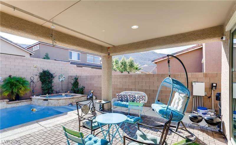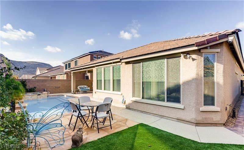 RARE FIND! 1 STORY WITH POOL AND SPA! Granite Countertops gorgeous backsplash, textured stone wall in Dining , recessed lighting throughout , Huge Master walk-in closet (With skylight in closet) , Master walk-in shower with seating area , Sparking blue pool and spa, Huge amount of Natural light, Open Floor Plan, Double Glass door den, Backyard and Driveway Pavers , artificial grass in Backyard, this house is one of a kind!