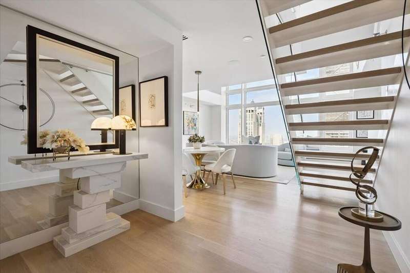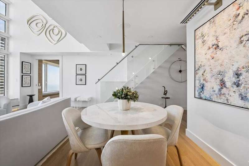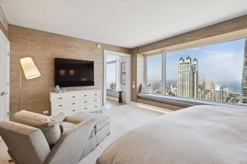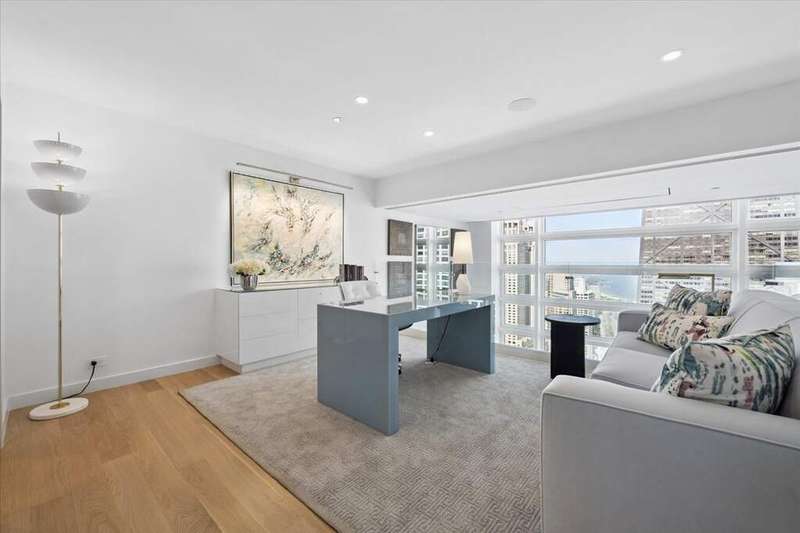 This one of a kind duplex home boasts spectacular views of lake and city on the 58th floor of Olympia Centre. This extraordinary unit is a masterfully redesigned expansive space with 20' soaring living room ceilings, 2 spacious bedrooms, 2.5 baths and magnificent closet space throughout. This 2022 gut rehab consciously reconfigured the space to optimize the exquisite views of the lake and city by installing a see through floating staircase leading to the 2nd floor bedroom with a focus on luxury living both aesthetically and physically. The kitchen and all bathrooms were a custom redesign with the utmost quality finishes. New hardwood flooring and custom millwork add to the elegance of this home. Miele and Sub Zero appliances throughout including an in unit washer/dryer. Beautifully designed stone countertops. Smart home with custom lighting and speakers. Unit 58k2 is a unique home centrally located and walkable to all Michigan Avenue and Oak Street shopping, restaurants and more. Fantastic building staff take care of your every need. Amenities include an indoor swimming pool, two well equipped work out rooms, 24 hour door staff, and on site management. A rare opportunity to own a true Chicago gem in the sky. Seller to settle balance of special assessment at closing. Assigned storage space. Offered furnished.