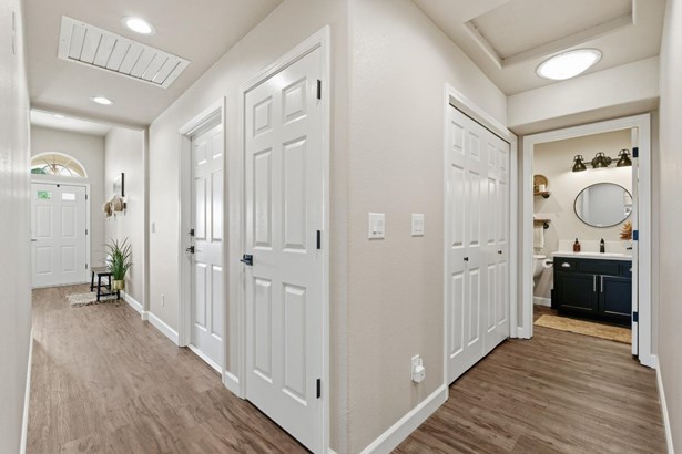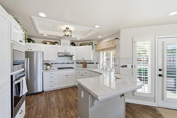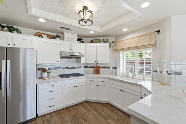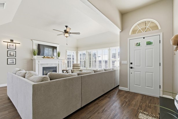 Welcome to this beautifully remodeled 3-bedrm, 2-bath home offering 1,517 sq ft of comfortable living space on a 4,264 sq ft lot in the desirable Greenwich Village community. Ideally situated near Woodward Park and Riverpark, this home provides convenient access to shopping, dining, and scenic walk and bike trails. The drought-friendly front yard features a synthetic lawn and newer concrete, offering great curb appeal with minimal maintenance. Step inside to an open family room filled with natural light, a cozy fireplace, whole house fan and plantation shutters throughout. The remodeled kitchen boasts granite counters, stainless steel appliances, and a mini beverage fridge with dual temperature controls. Enjoy recessed lighting throughout and a spacious primary bedroom with a large walk-in closet and an en-suite remodeled bathroom. The low-maintenance backyard offers space for patio furniture and relaxing outdoor living. This move-in-ready home combines comfort, style, and location.
