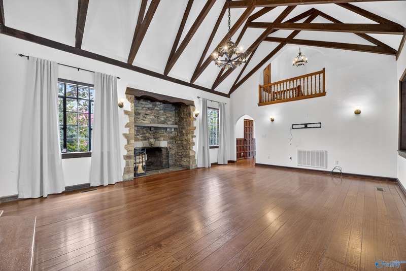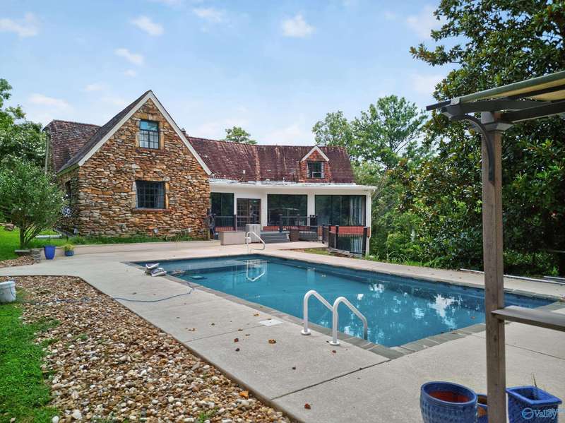 "Resplendent English Tudor" rich in detail-steeped in history-beautiful sunsets-mountain views- 5 acres - you will enjoy all the updates-gourmet Kitchen-glassed in Breakfast area & Sunroom offering a full view of Pool area - Entrance features wainscotting-staircase with landing - view of Grand Hall living area from interior Juliet balcony - adjoining bedroom - Grand Hall features massive stone/brick fireplace - soaring ceiling w/wood cross beams -Formal Dining room - MBR & BA down - 2BR down - New Trex Deck overlooks salt water pool - Wide Oak plank floors w/dowels - Spring House- Full house Cummins Onan automatic generator - Partial Basement - Home custom built in 1922.