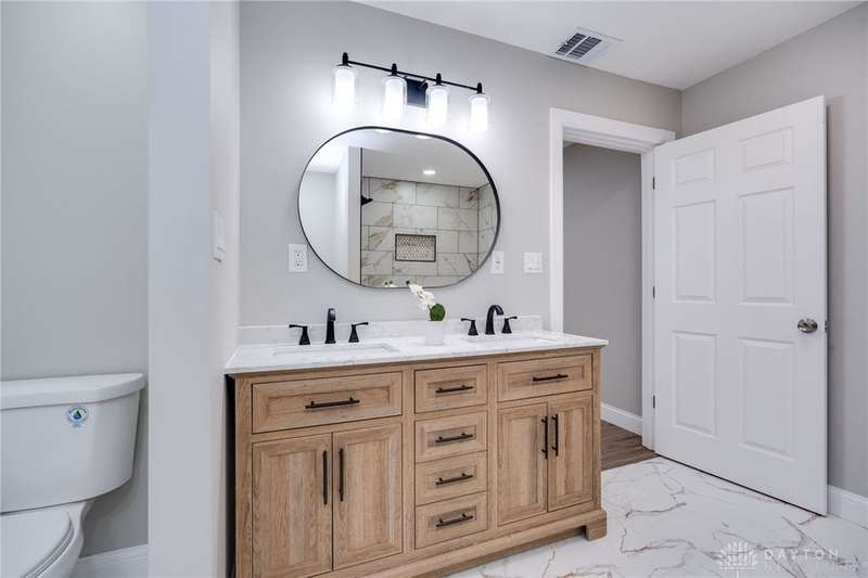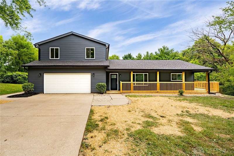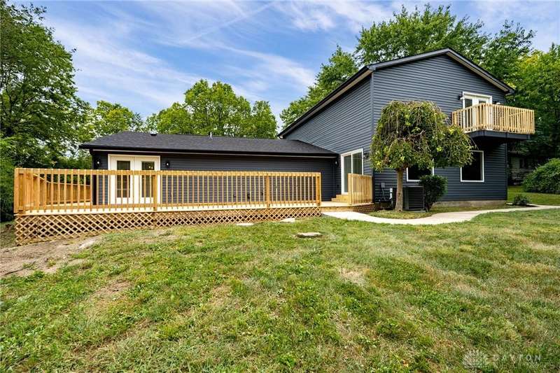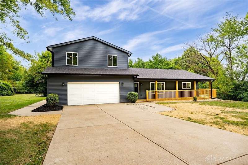This beautifully renovated, down to the studs, farmhouse-style home in Springboro City School District offers nearly 3,000 sq. ft. of living space plus an additional 500+ sq. ft. unfinished basement, ready to be customized to fit your vision. Nestled on just over an acre of wooded property, the home features a charming wrap-around deck ideal for taking in the peaceful setting. Inside, the gourmet kitchen is a showpiece with quartz countertops, soft-close cabinetry, and all-new stainless-steel appliances. The oversized laundry room includes a custom folding counter, while the expansive family room boasts a built-in electric fireplace with a custom mantel and views of the gorgeous backyard. A custom staircase leads to the spacious primary suite, highlighted by a private balcony, walk-in closet, tiled shower, and stand-alone soaking tub. Additional features include an oversized 2-car attached garage, a large rear shed with a garage door, and thoughtful finishes throughout. This property offers a perfect blend of charm, comfort, and modern elegance. Owners are licensed Real Estate Agents.
