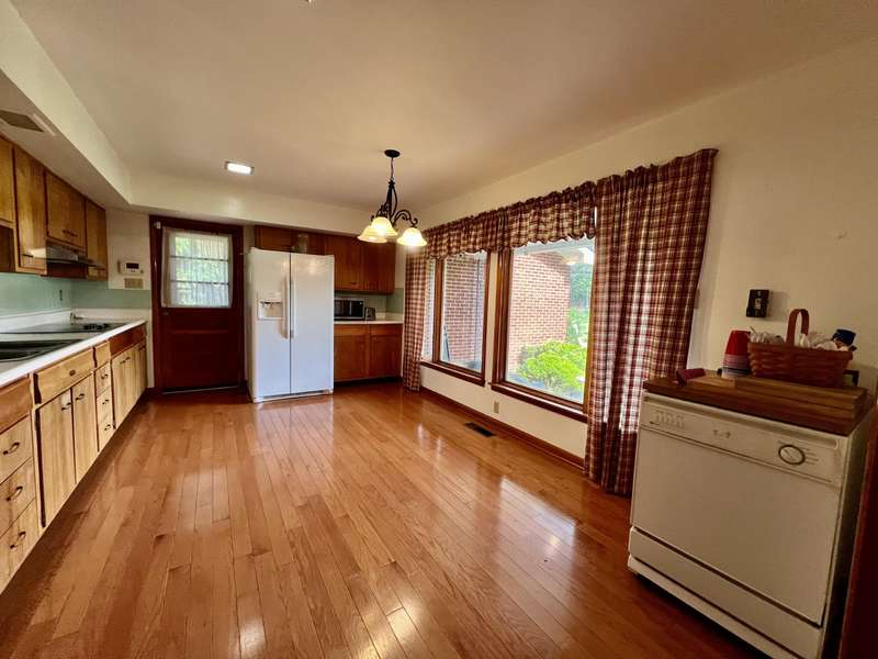 This well-built multi-level 4 bedroom, 3 bath brick home offers a blend of space, comfort, and timeless craftsmanship. The main level features a large formal living room with a beautiful fireplace currently set with gas logs but also suitable for wood burning. Hardwood, tile, and carpet flooring flow throughout the home, adding warmth and character to each space. Also an inviting eat-in kitchen with appliances to stay Upstairs, you'll find the private primary suite along with additional bedrooms designed for comfort and convenience. The lower level showcases a spacious family room with walk-out access, 1 bedroom and 1 bath, and a separate utility room. Outside, a blacktop drive leads to the home and attached garage. The property sits on 2.6 +/- acres of cleared, flat land, offering an absolutely beautiful yard with outstanding curb appeal. Enjoy the large covered patio and back deck, perfect for outdoor living and entertaining. The home features a durable metal roof and is equipped with central heat and air, with ceiling cable as backup heat. City water and sewer are also in place.