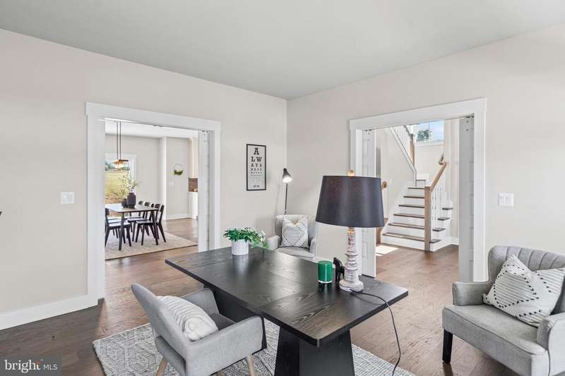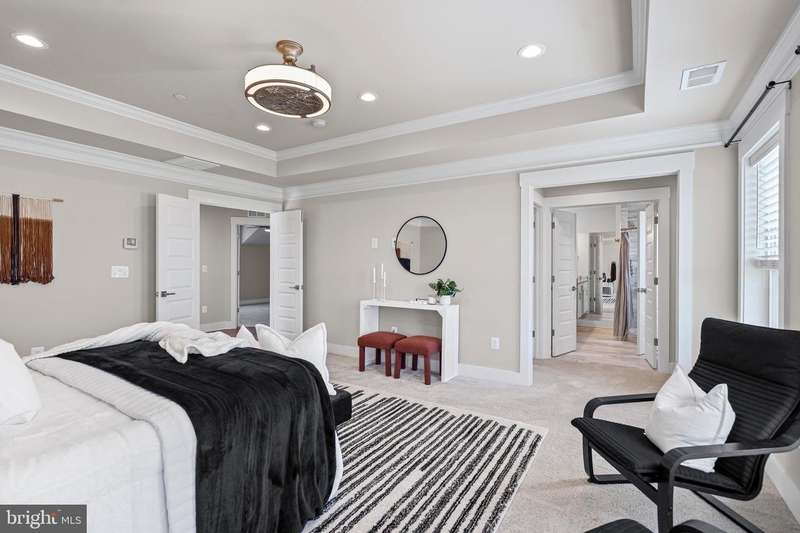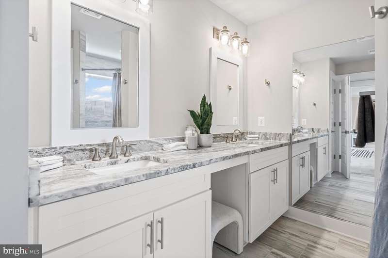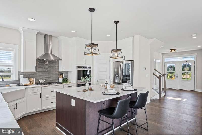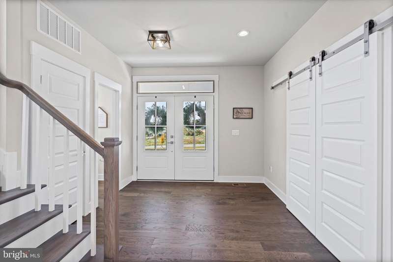 Better Than New and Immaculately Maintained in The Preserve at Forest Hill Farms! Pull up to this showstopping modern farmhouse-style colonial showcasing white vinyl siding with black accents, a covered front porch, professional landscaping, an oversized driveway, and a side-load 2-car attached garage. Through the double entry doors, step inside the stunning main level featuring 9-foot ceilings, luxury vinyl plank flooring, and an open, designer layout perfect for today's lifestyle. The welcoming foyer offers a coat closet and powder room and opens to a private main-level office accessed through custom barn doors-with an additional set leading into the sprawling gourmet eat-in kitchen. Every detail has been thoughtfully curated: quartz countertops, a large accent island with breakfast bar seating and pendant lighting, 42-inch white cabinetry with crown molding, subway tile backsplash, walk-in pantry, and a full suite of stainless-steel appliances, including a smart side-by-side refrigerator, gas/propane cooktop with range hood, double smart wall ovens, built-in microwave, and dishwasher. The kitchen flows seamlessly into the expansive family room featuring tray ceilings, crown molding, a ceiling fan, and a gas/propane fireplace with shiplap surround and custom mantle-creating the perfect space for entertaining or relaxing. Off the kitchen, the mudroom includes custom built-in cubbies and garage access, while 9-foot sliders lead to the custom rear paver patio with stone retaining wall and built-in seating, offering a private outdoor oasis. Upstairs, the primary suite is a true retreat, featuring double door entry, tray ceilings, custom ceiling fan, crown molding, a walk-in closet with dressing area, and a luxurious ensuite bathroom with granite dual vanities, dressing area, private water closet, and an oversized walk-in shower with dual shower heads. The second and third bedrooms share a Jack-and-Jill bathroom with dual vanities, while the fourth and fifth bedrooms are generously sized and located near the full hall bath. The upper-level laundry room adds exceptional convenience. The lower level feels endless, offering luxury vinyl plank flooring, recessed lighting, a massive recreation room, game room area, full bathroom, spacious storage area, and utility room, all with a walk-up to the rear patio for seamless indoor-outdoor living. All of this in the highly desirable Preserve at Forest Hill Farms, a modern, private community just minutes from Bel Air, Forest Hill, and Fallston-offering the perfect blend of luxury, location, and lifestyle.