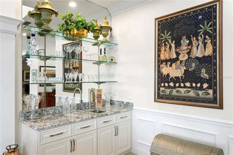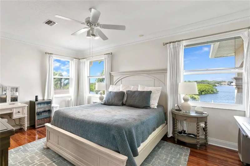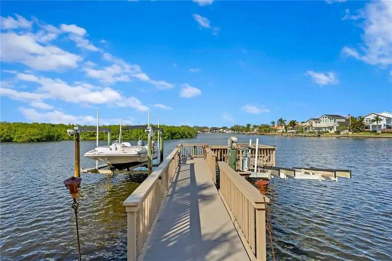Experience exceptional waterfront living in the gated community of Pelican Island! This spacious two-story residence offers 5 bedrooms, 5 baths, 3 car garage, and approximately 5,095 square feet of thoughtfully designed living space. The home welcomes you with a grand staircase and abundant natural light throughout. The expansive family room features a fireplace, built-in wet bar, and soaring ceiling open to the second floor. A cozy den and a climate-controlled 450+ bottle wine room sit just off the family room, creating an ideal layout for relaxing or entertaining. The formal dining room provides an elegant setting for special gatherings. The large kitchen is well appointed with solid wood cabinetry, a generous island, granite counters, double ovens, a induction cooktop, and a spacious dining area overlooking the water. Downstairs also includes an office with a walk-in closet, a gym with an adjacent full bath, and a guest bedroom with a nearby full bath. A catwalk above the family room leads to the upstairs bedrooms, including the primary suite, where peaceful views of the mangrove preserve and canal create a serene retreat. The suite includes dual walk-in closets and a well-designed bath with a double vanity, garden tub, separate shower, and water closet. Three additional bedrooms complete the upper level; two share a Jack-and-Jill bath, each featuring its own walk-in closet. Outdoor living is a highlight, with a large pool, outdoor kitchen with smoker, and a dock equipped with a 10,000-lb boat lift. Enjoy quick boat access to the open waters of Old Tampa Bay and beautiful sunset views each evening. The backdrop of lush mangrove preserve and the wide canal ensures privacy and natural beauty. Pelican Island is a gated waterfront neighborhood of custom homes located minutes from Berkeley Preparatory School, Tampa International Airport, International Plaza, the Westshore Business District, and Downtown Tampa. Nearby Skyway Park offers a playground, tennis courts, and athletic fields, along with trail access to the Courtney Campbell Pedestrian Bridge. Rocky Point Golf Course is just across the street. This home combines comfort, space, and an exceptional waterfront lifestyle in one of Tampa’s most desirable locations!