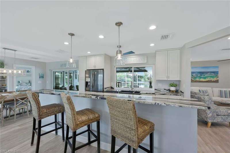 From the moment you step through the door, you'll feel it, this is home! Light, bright, and beautifully updated, this 3-bedroom, 2-bath coastal retreat offers the perfect blend of comfort and modern Marco Island living. Virtually every part of the home has been redone or upgraded - from the kitchen and master bath to the roof, floors, impact glass windows and sliders, pool deck, and new pool heater. The home also features all-new plumbing beneath the house, including both water and sewer lines, for total peace of mind. Enjoy two spacious living areas with new luxury vinyl plank flooring, an open kitchen with granite countertops and a stone farmhouse sink, and breathtaking lake views from nearly every room. Step into your backyard oasis to watch the sunset, listen to the birds, and take in the beauty of Florida wildlife. The .33-acre lot offers room to garden, play, or park your boat or RV. Ideally located near Veterans Park and Marco Island's famous farmers market, this move-in-ready home offers proven rental income and a lifestyle you'll love! Listing Agent is the owner
