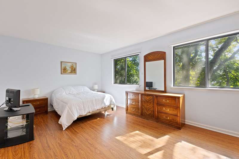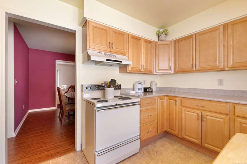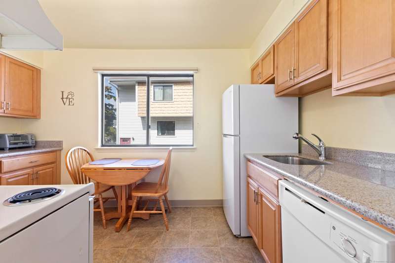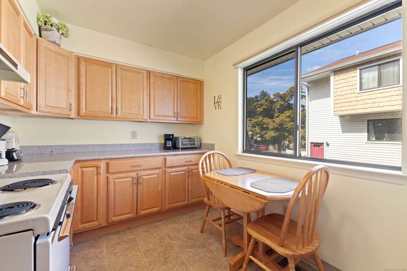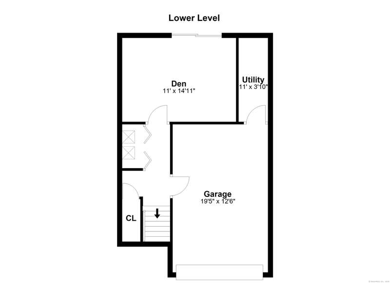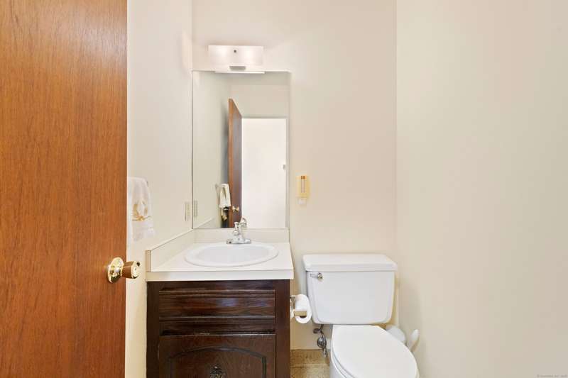 Starting out or downsizing? Here's a townhouse style condo with an attached one car garage in the 9 unit Hope Manor complex in the convenient Springdale neighborhood in Stamford. Plenty of space with a fireplace in the large living room, a formal dining room, an eat in kitchen, and two large bedrooms. A sizable den, good storage space and laundry are on the garage level. Primary bedroom has extra vanity closet with some plumbing, could be converted to primary bath. Sliders to decks on both the main and lower levels. Great combination of space and location in today's market. Layout plans in the photo section.