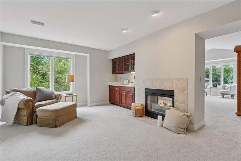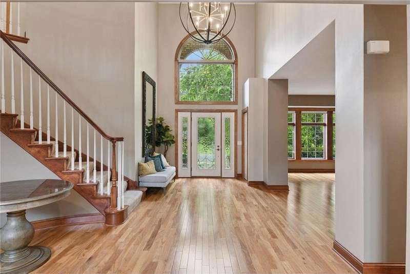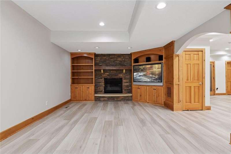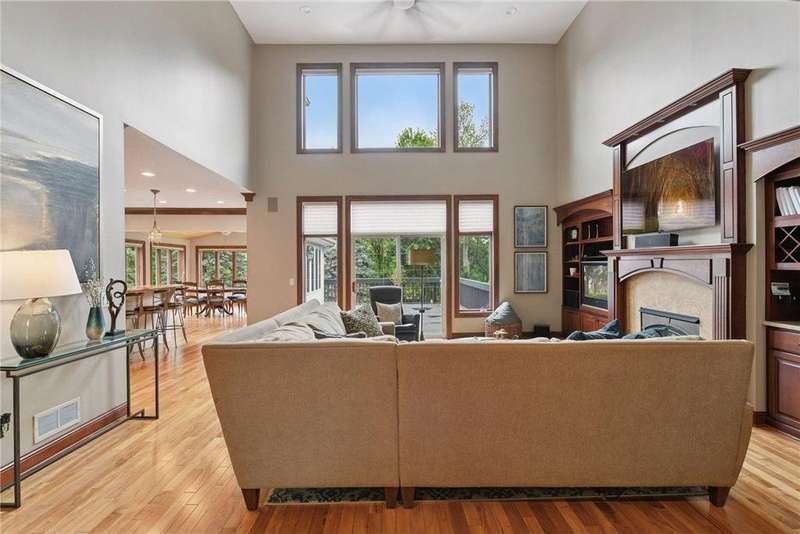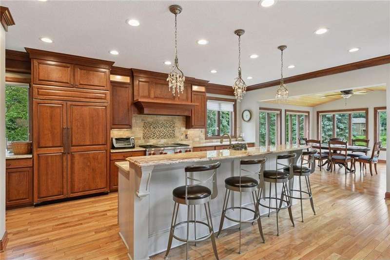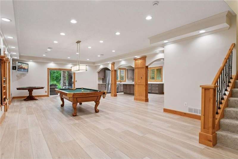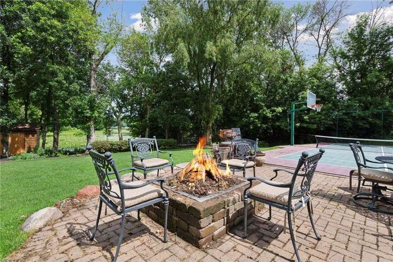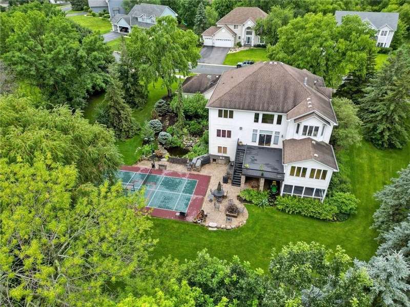 Rare opportunity to be only the third owner of this lakeside beauty! This property features 100 feet of flat lakeshore on Lake Mitchell, complete with an "L"-shaped dock that is perfect for fishing. Enjoy a lakeside patio for watching sunsets, and an outbuilding for storing your lake toys. Popular summer activities include paddle boarding and kayaking, with a 10-horsepower motor limit. In winter, you can take advantage of cross-country ski trails and ice skating. The backyard boasts a sports court the legal size of a pickleball court, equipped with a basketball hoop. It also includes a full stainless steel outdoor kitchen, a koi pond with a waterfall, a fire pit, and a hot tub. Enjoy beautiful outdoor living spaces, including a 16 x 16 screened porch and an oversized deck. The walkout lower level was remodeled in 2024 and features two additional bedrooms, a 3/4 bath, an amusement room with a gas fireplace, and a full kitchen. You will also find a beautifully relaxing sauna and a storage room with built-in shelving. As you enter the home, you'll be greeted by a stunning spiral staircase. Formal living and dining areas, creating a very open floor plan. The two-story family room has a full wall of windows facing the lake, allowing for plenty of natural light. The newly remodeled kitchen features high-end finishes and appliances, along with new hardwood flooring on the main level. You will also find a breathtaking sunroom and a main floor office with built-in workstations, which could be converted into a main floor bedroom. The property includes a four-car garage with built-in and overhead storage, heated and featuring a drain in the fourth stall. Upstairs, you will find new carpet throughout. The primary suite includes a bay window sitting area overlooking the lake, along with a two-sided fireplace separating the bedroom from the sitting area with a coffee bar. It also features two primary closets with California Closet systems and a luxurious primary bath. One of the additional bedrooms has an ensuite bathroom, while the other two bedrooms share a full Jack and Jill bath. A catwalk separates the three additional bedrooms from the primary suite, and all bedrooms have California Closet systems. Additional features include three-zone heating and surround sound both indoors and outdoors. The property is situated on a 3/4-acre lot with many windows offering stunning views and ample natural light. It has convenient access to major roads, Flying Cloud Airport, schools, and community centers—making it a perfect location. For bikers and runners, the trail system is just a block from this property, and Miller Park is only minutes away, whether you are walking or biking.