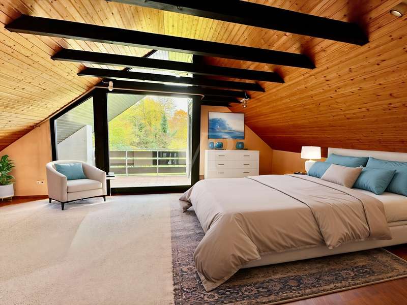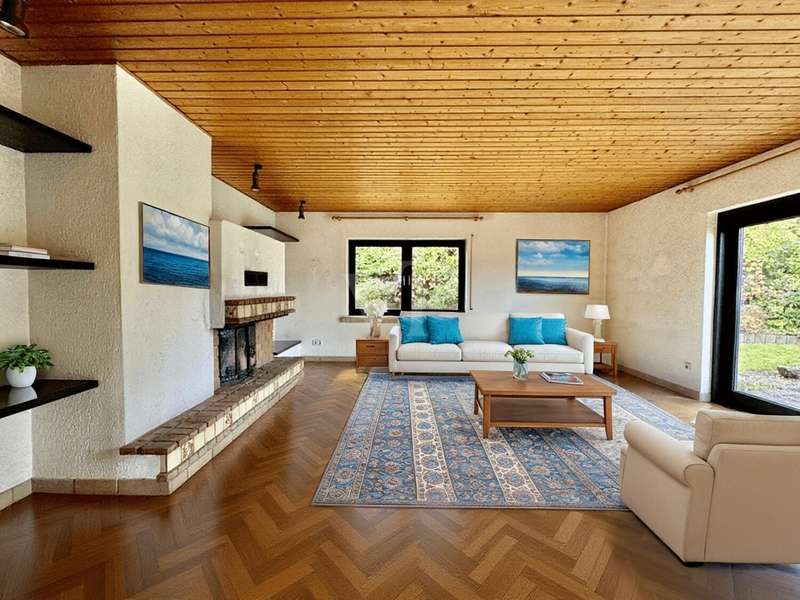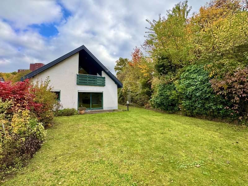 This detached family home in a sought-after residential area presents itself as an attractive offer for families, couples or anyone who values spacious living in a quiet neighborhood. With a living space of approx. 120 m² and a plot size of around 679 m², this property offers a well-thought-out room concept that opens up a wide range of possible uses. The property extends over two floors and comprises a total of five rooms. On the first floor, you will find a spacious living and dining area, which receives plenty of natural light through large windows and provides a harmonious transition to the adjoining terrace. The dining area is clearly separated from the living area - ideal for socializing with family and friends. Directly adjacent is the separate kitchen, which offers plenty of space for individual design. A guest bathroom and a bedroom or study complete the first floor. The beautifully designed staircase takes you to the upper floor, which comprises a total of two bedrooms and a large shower room. All bedrooms are bright and offer a pleasant retreat. Another highlight is the large south-facing balcony. The house has a basement and a large utility room with a washing machine connection, a storage room and another multifunctional room that can be used as a hobby or fitness area. The heating system is based on an energy-efficient gas central heating system that is regularly serviced. The well-tended garden invites you to linger with its lawn and landscaped flowerbed. Children have plenty of space to play at ground level, while adults can relax in the greenery. The adjoining terrace is covered and is ideal for barbecues or relaxing afternoons together. The house comes with a single garage and a further parking space on the property. The location of the house is characterized by a very good infrastructure: Shopping facilities, schools, kindergartens and public transport are all within walking distance. Thanks to the proximity to various green spaces and leisure facilities, residents benefit from a high level of living comfort. You are welcome to arrange a viewing appointment to get a detailed picture of this property. We are available to answer any questions you may have and look forward to hearing from you.