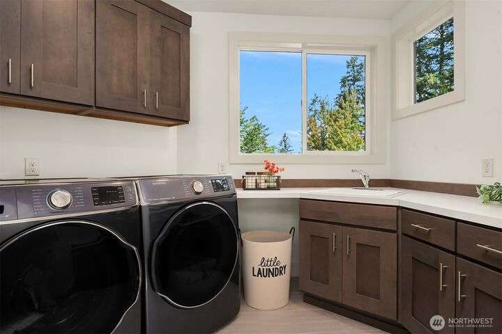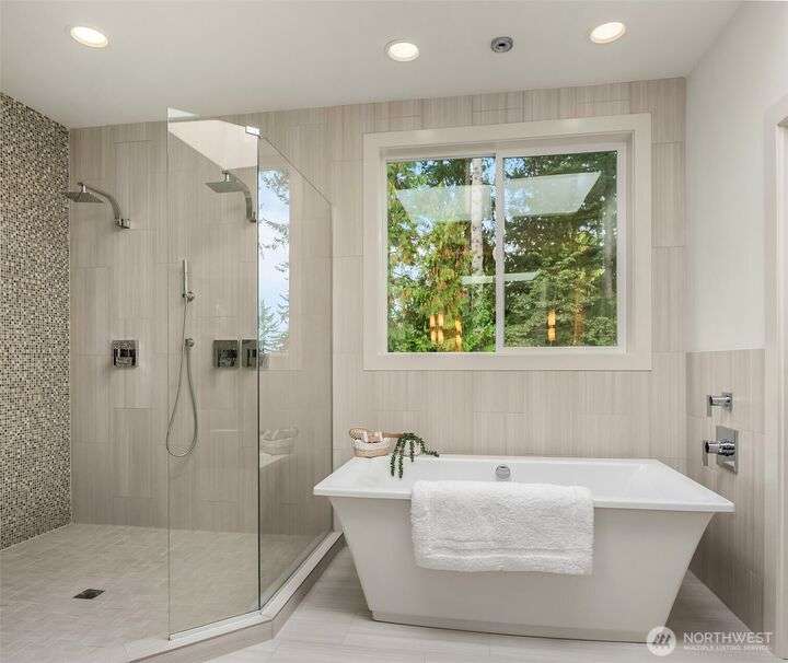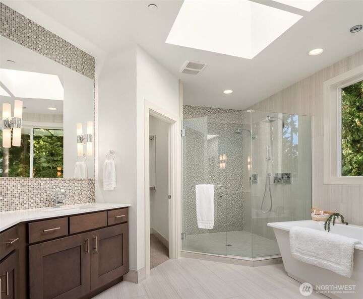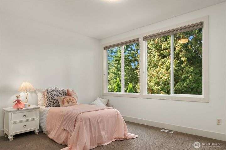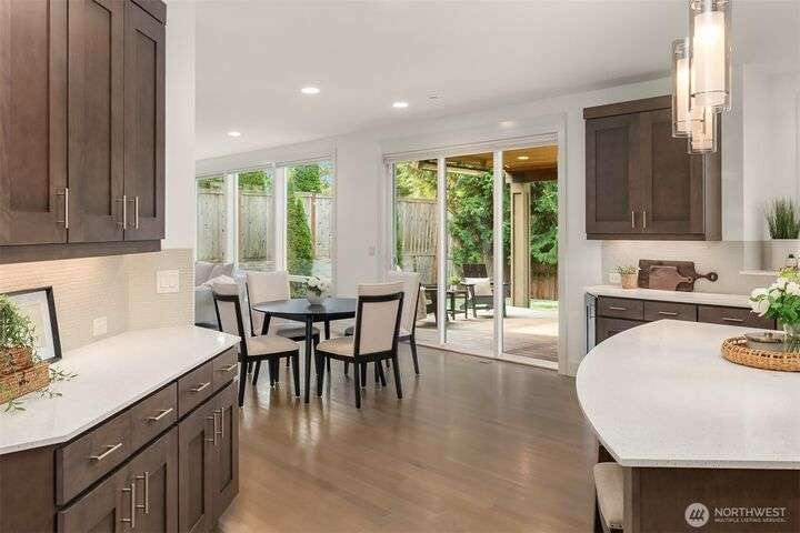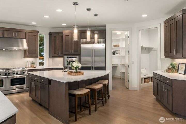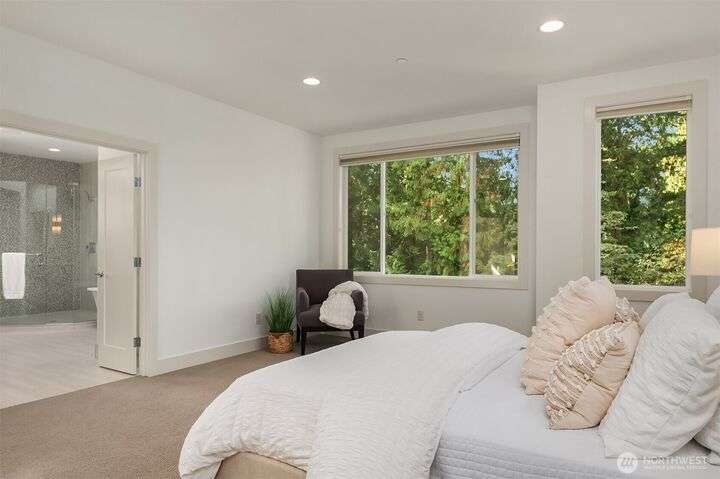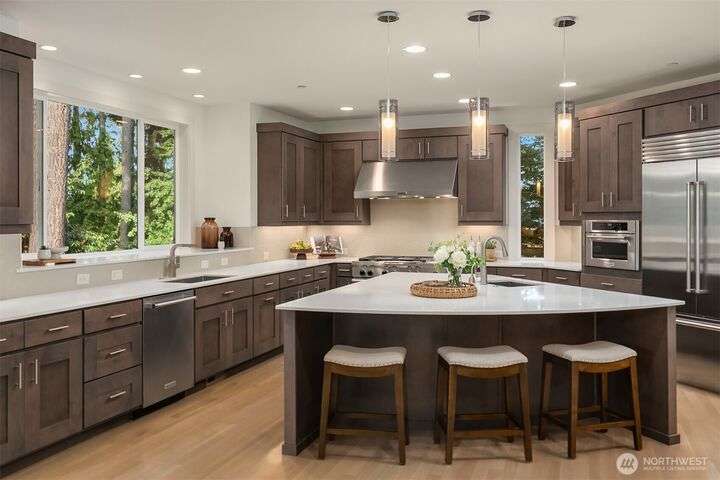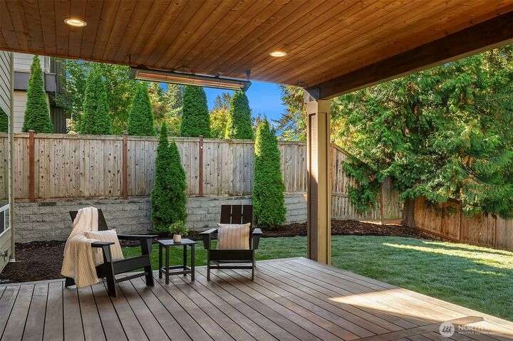 Immaculate Murray Franklyn resale in a quiet, no-thru-traffic neighborhood within coveted Bridle Trails—just minutes from I-405, Downtown Kirkland, Bellevue & Redmond. Showcasing a dramatic 2-story foyer, 9’ ceilings, walls of windows & covered heated deck providing easy year-round enjoyment. A chef-inspired kitchen w/ premium appliances opening to a spacious working pantry—an elegant prep space designed for seamless entertaining. Luxurious upstairs primary suite w/ spa-like bath & walk-in closet, plus main-floor guest suite, additional upper ensuite bedroom, bonus room, A/C, EV Charging, RARE 12K+ sqft lot & oversized 2-car garage with shop area. Top rated LWSD: Franklin Elem, Rose Hill MS, Lake Washington HS. No HOA. Pre-Inspected.