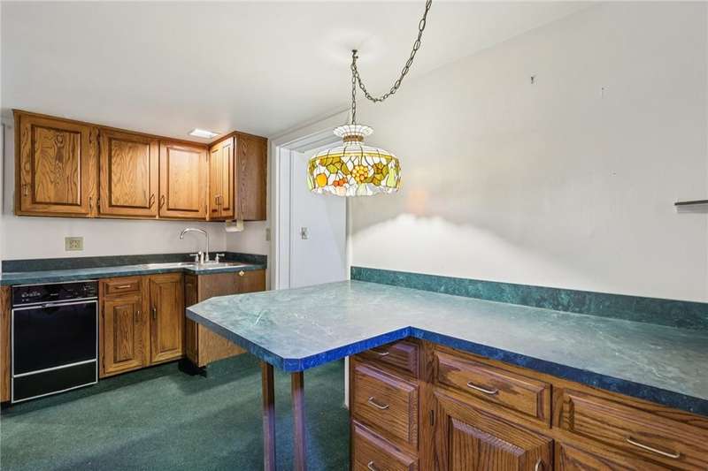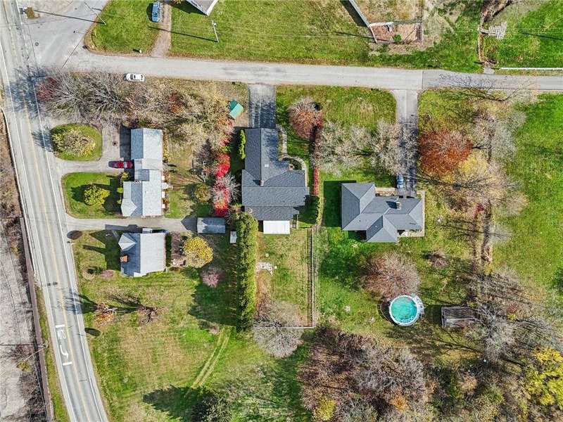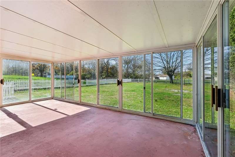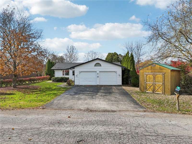 Looking for space ??? This contemporary style ranch boasts over 2700 square feet of finished living area. The home features updated white cabinetry with a center island. There is a dining room for all those holiday get togethers . Enjoy multiple chandeliers on this level. The homeowner had unique style, which is evident throughout the home. Two bedrooms and an updated bath complete this level. Step down to the family room with cathedral ceilings and a wood burning fireplace. Bookcases flank the wall next to the fireplace and additional shelving on the right. There is a second in law kitchen two additional bedrooms and two full baths on this level. Walk out to a sunroom with sliding glass doors and a fenced in area for all the fur babies. So much to offer in this contemporary ranch style home. Two car attached garage and an additional third garage , which was a studio complete this spectacular home. A newly constructed Amish built shed provides storage for gardening tools. Roof in 2025.