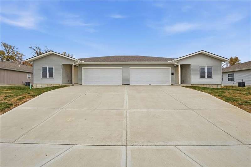 Welcome home to easy, one-level living in this bright and low-maintenance half-duplex, built just 2 years ago. This well-designed 3-bedroom, 2-bath home offers an open layout, modern finishes, and true main-level convenience with no stairs.The kitchen opens seamlessly to the dining and living areas, creating a comfortable space for everyday living and entertaining. The primary suite includes a spacious en-suite bath and walk-in closet. Two additional bedrooms and a second full bath provide ideal flexibility for guests, an office, or hobbies.Features include:Newer construction (approx. 2 years old)Low-maintenance living with HOA servicesTrue single-level layoutOpen concept kitchen, dining, and living areasLarge primary suite with walk-in closet2-car garage with additional storageGreat location just minutes to Royal Meadows Golf Club, nearby shopping, Arrowhead Stadium, and Kauffman Stadium. Quick highway access and less than 15 minutes to downtown Kansas City.HOA requires owner-occupants; rentals are not permitted.